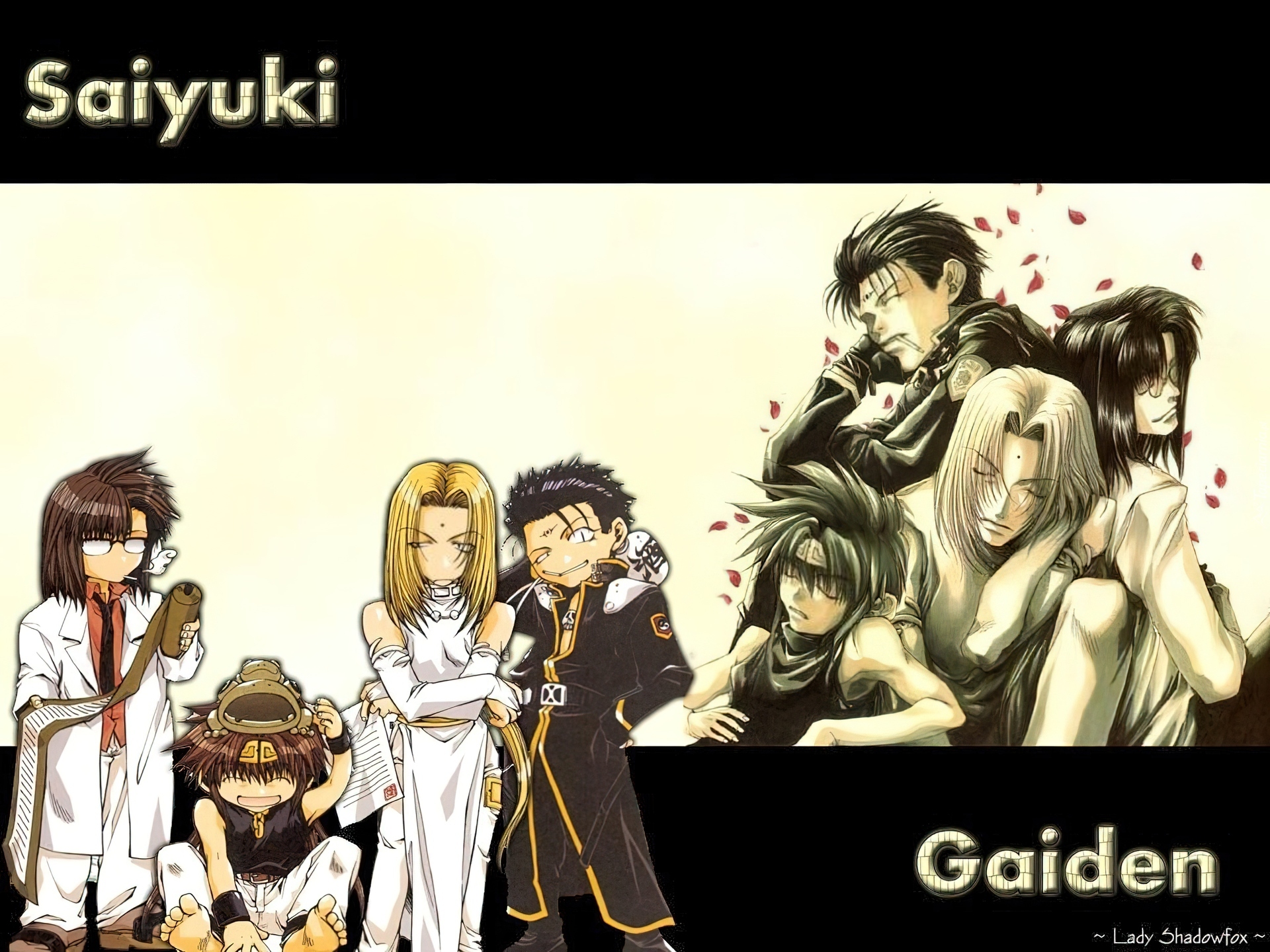 Edytor tapety: Saiyuki, płatki, postacie
