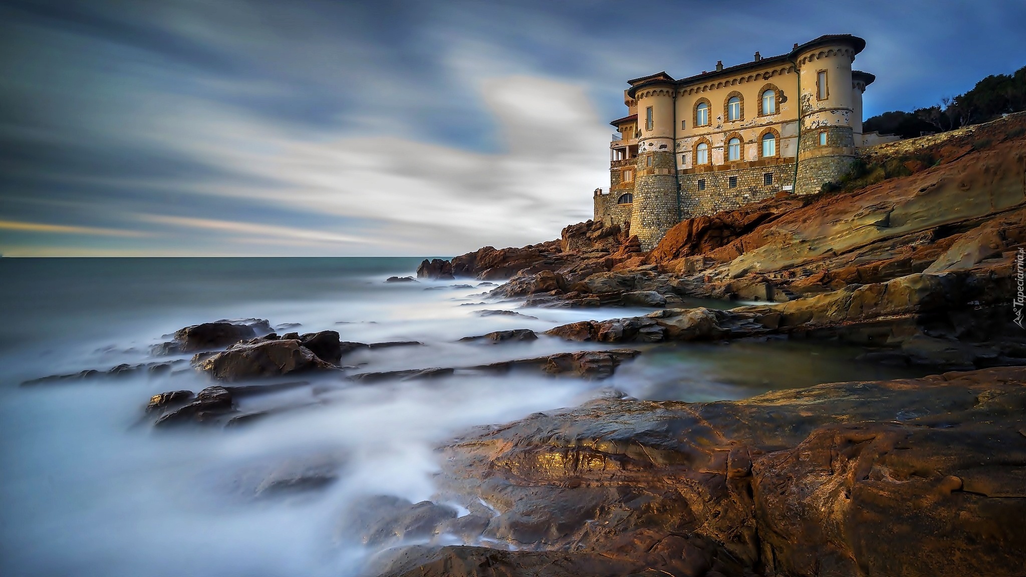 Edytor tapety: Morze, Niebo, Skały, Zamek