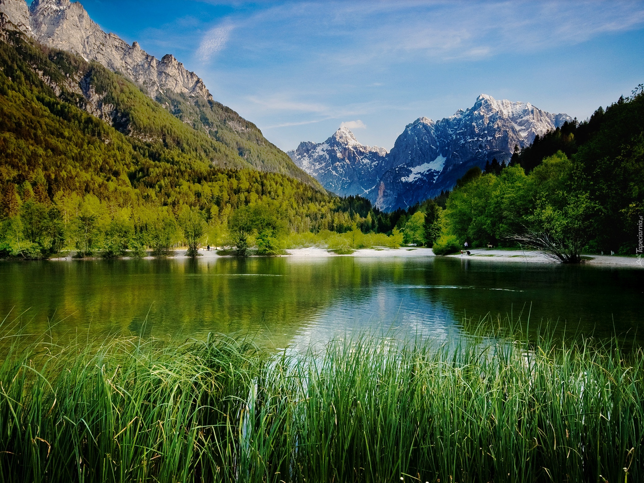 Edytor tapety: Góry, Drzewa, Rzeka, Trawa