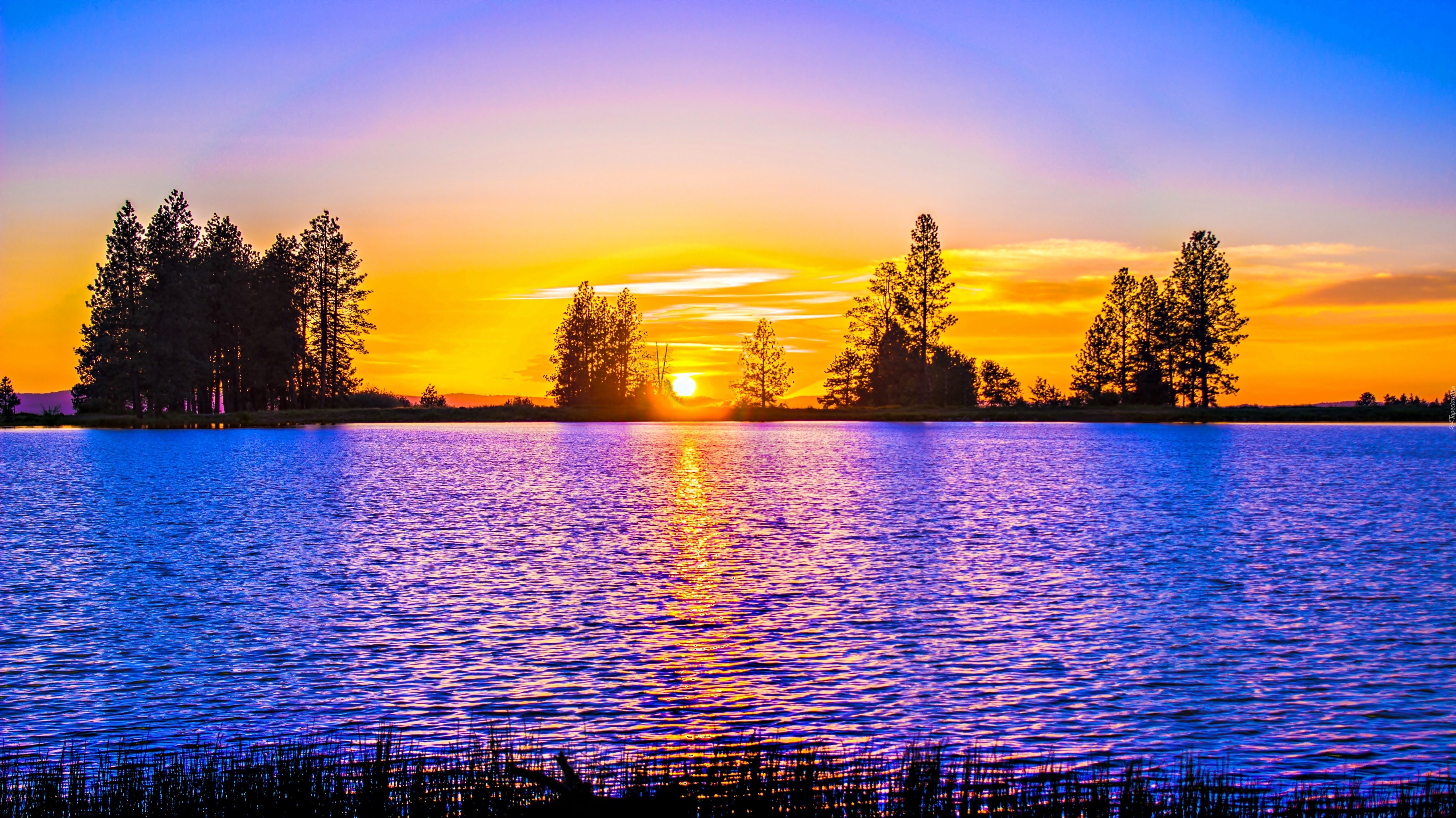 Edytor tapety: Rzeka, Drzewa, Świt