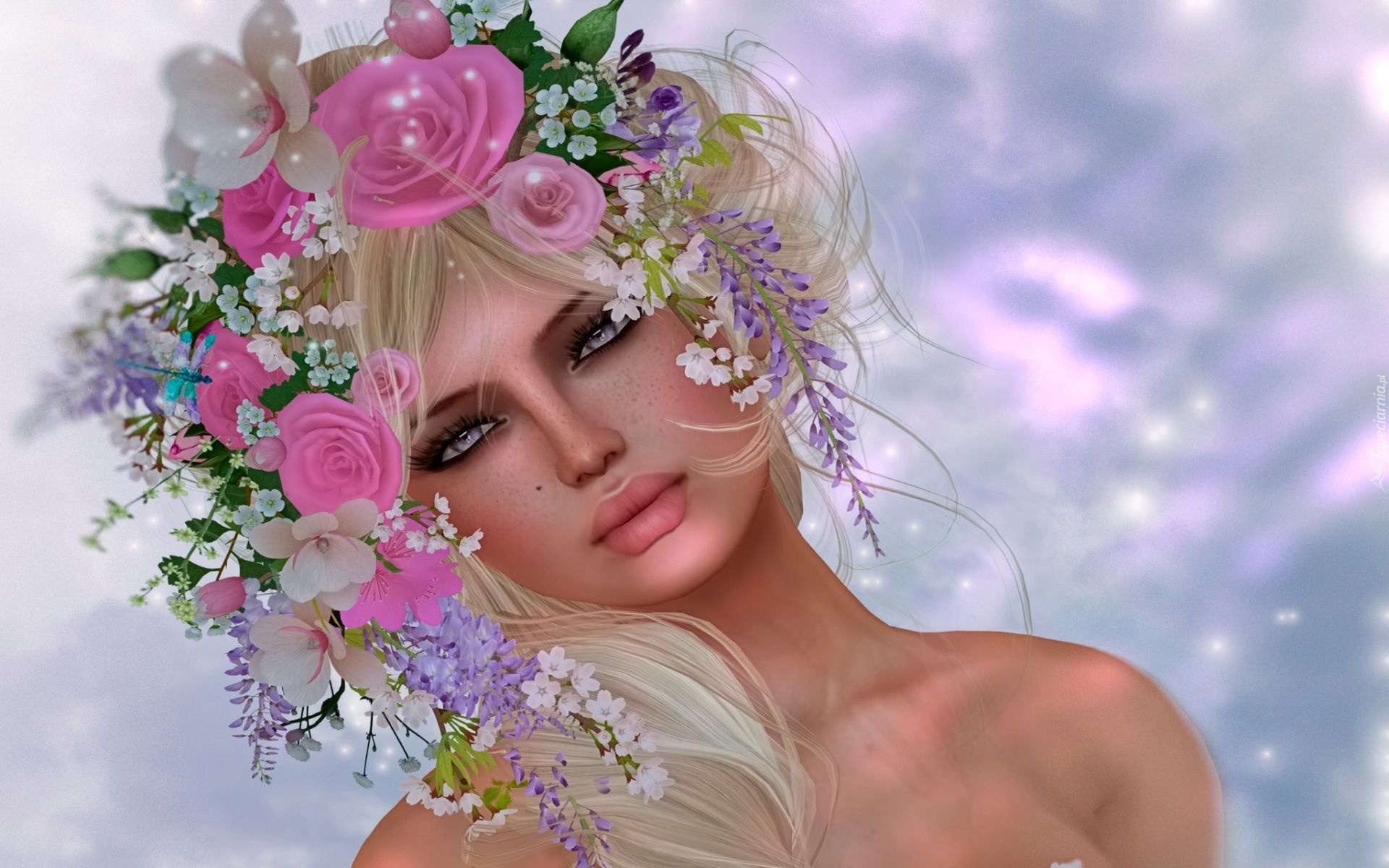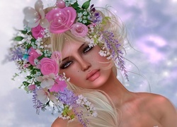 Edytor tapety: Fantasy, Kobieta, Wianek, Kwiaty