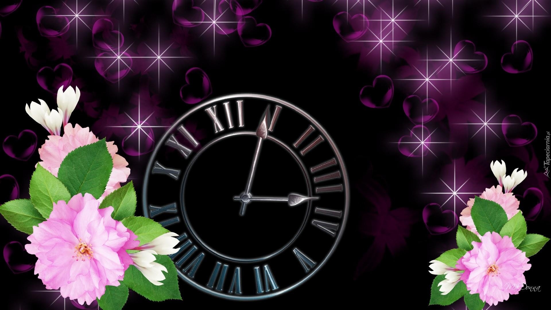 Edytor tapety: Zegar, Kwiaty, Serca, Gwiazdki