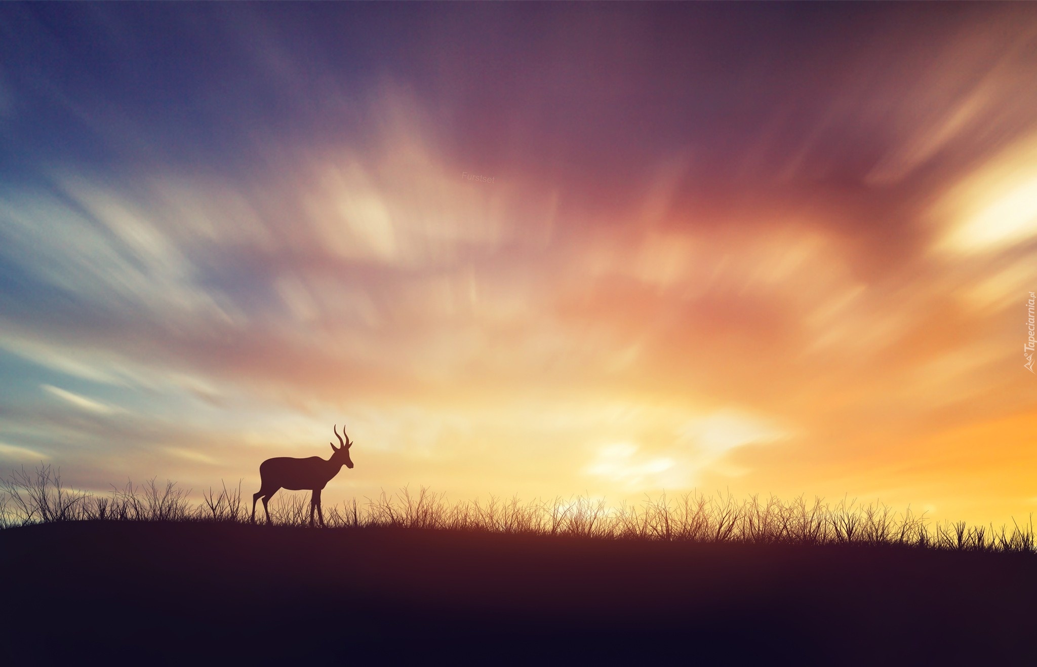 Edytor tapety: Afryka, Sawanna, Antylopa, Zachód, Słońca