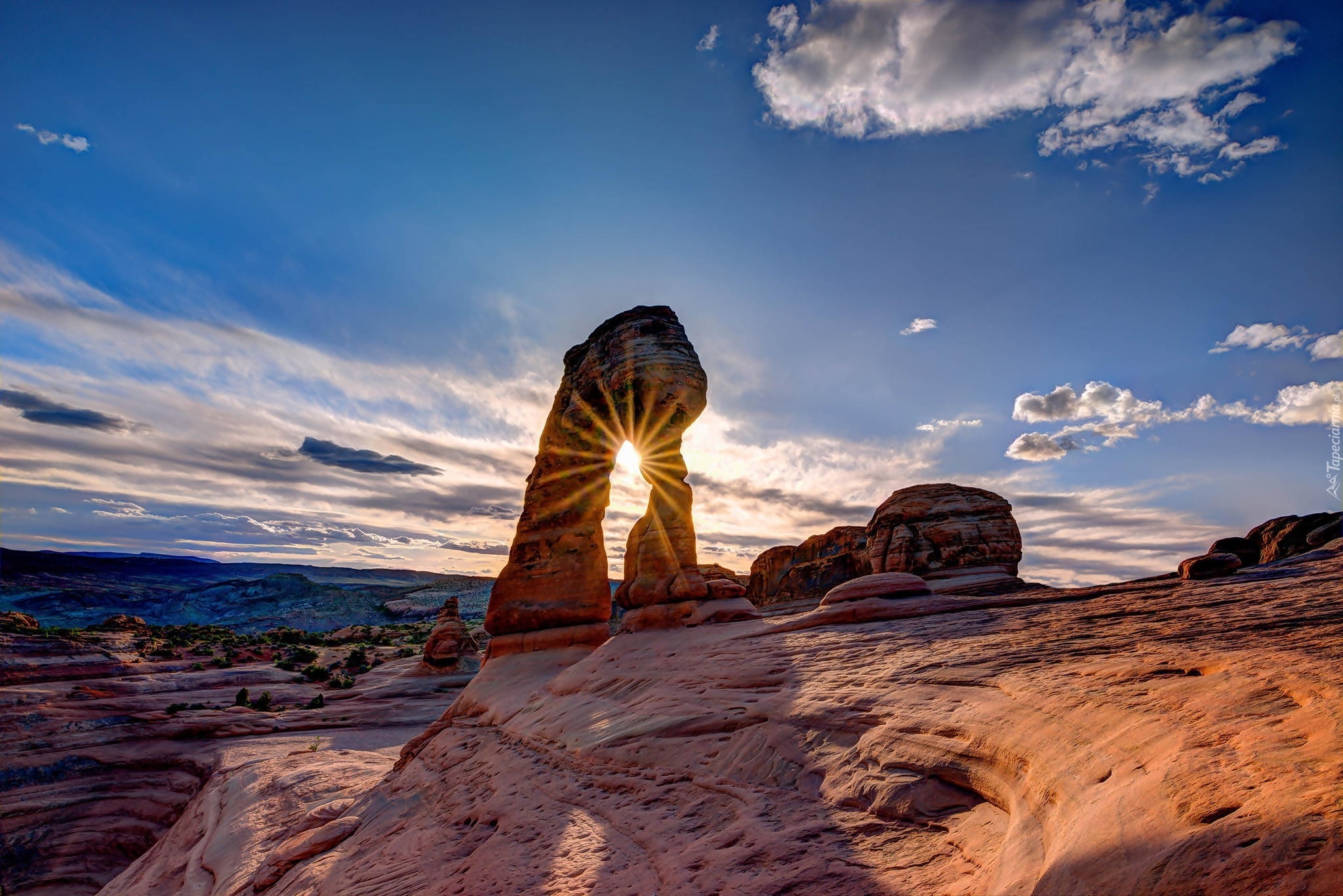 Edytor tapety: Kanion, Skały, Promienie, Słońca, Chmury