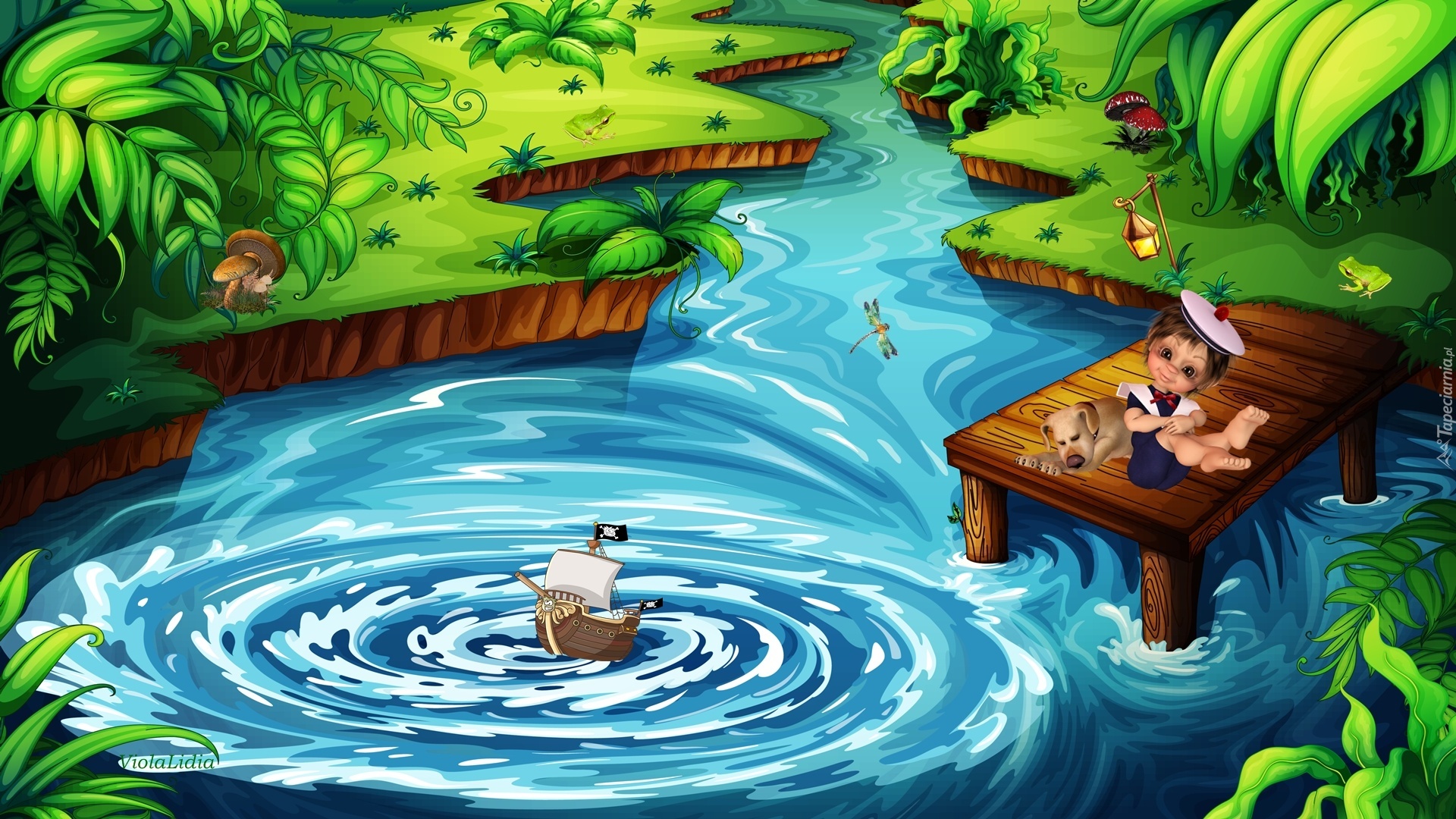Edytor tapety: Grafika, Laleczka, Rzeka, Zabawka, Statek