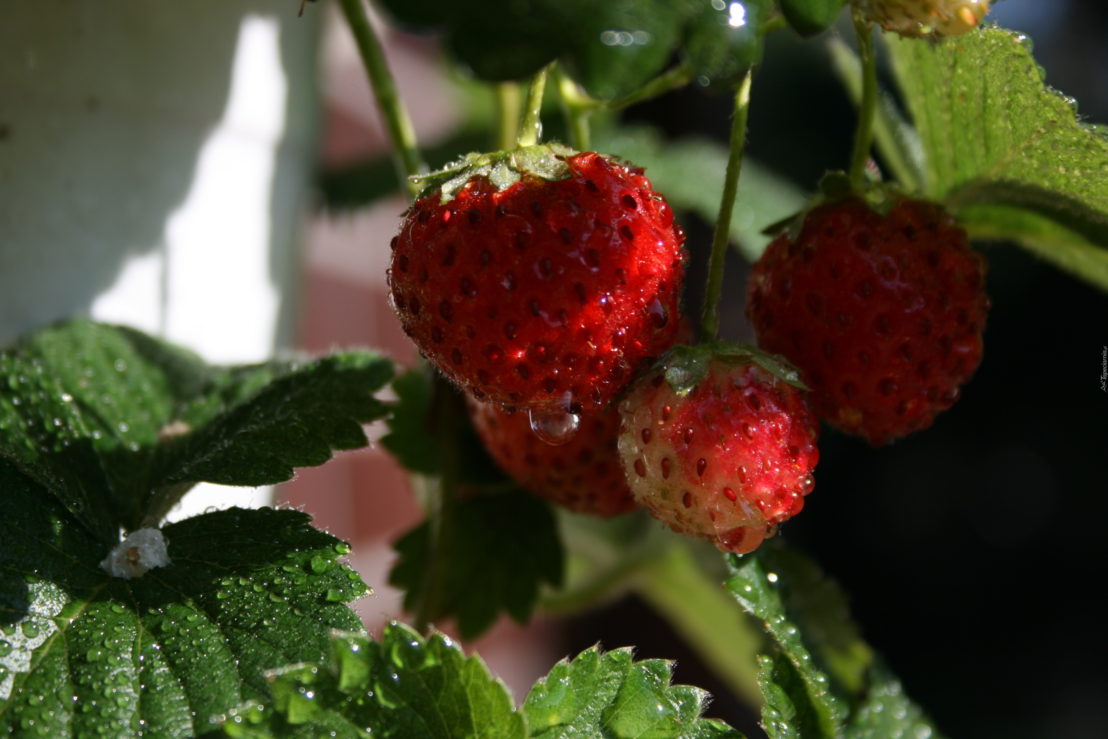 Edytor tapety: Truskawki, Liście, Kropelki, Wody