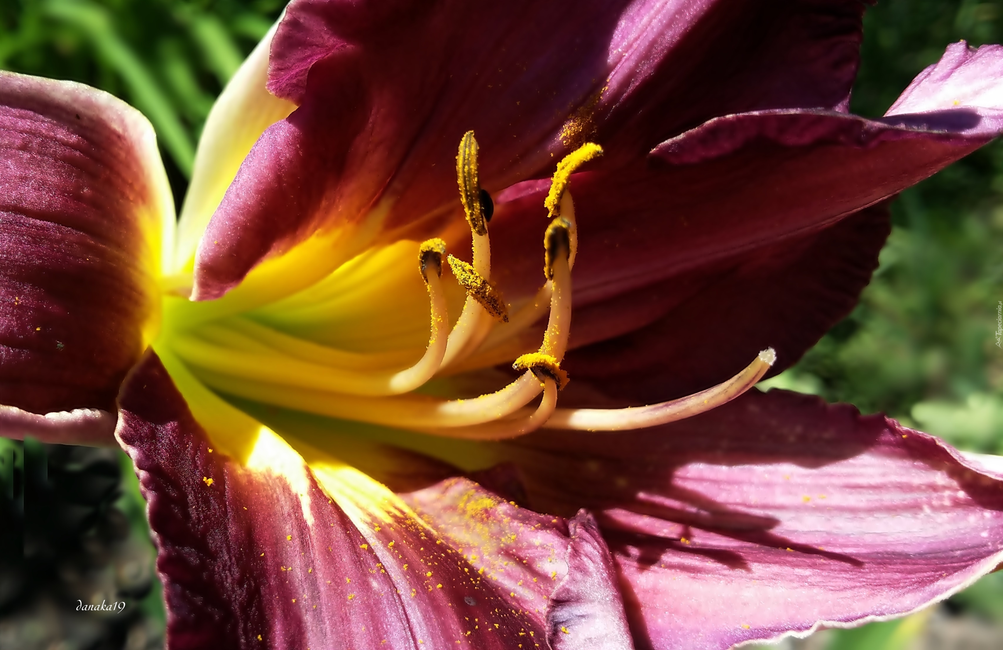 Edytor tapety: Bordowy, Liliowiec, Zielono, Żółty, Środek, Pręciki, Makro