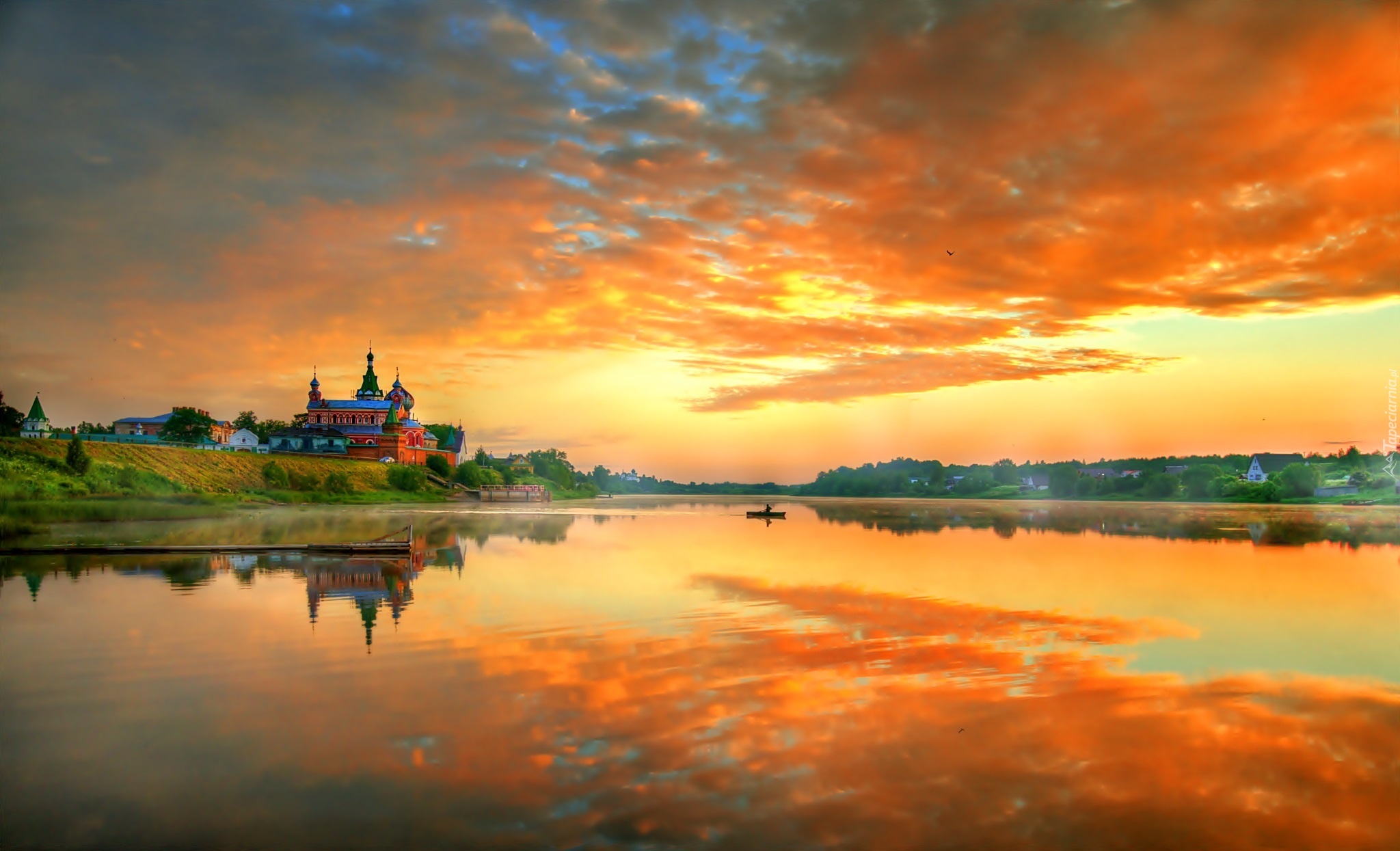 Edytor tapety: Cerkiew, Stara Ładoga, Rzeka, Świt