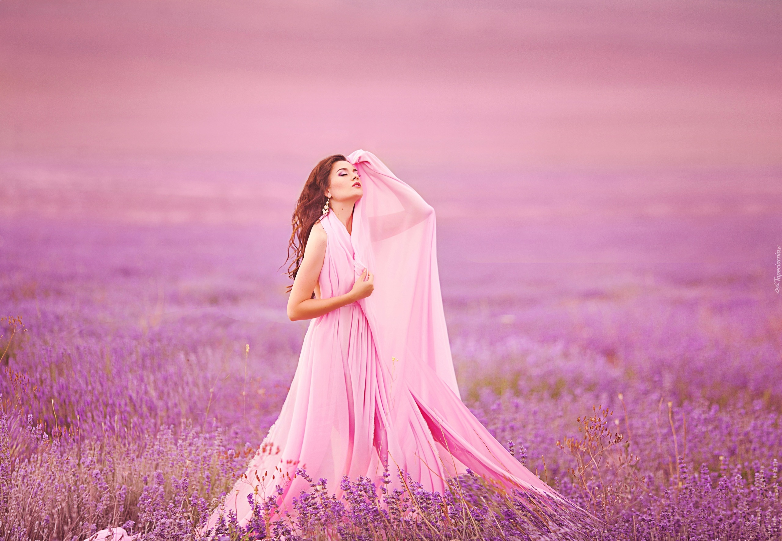 Edytor tapety: Lawendowe, Pole, Kobieta