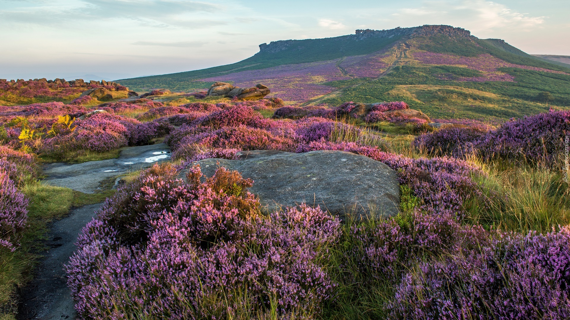 Edytor tapety: Anglia, Park Narodowy Peak District, Wzgórza, Skały, Wrzosy, Wrzosowisko