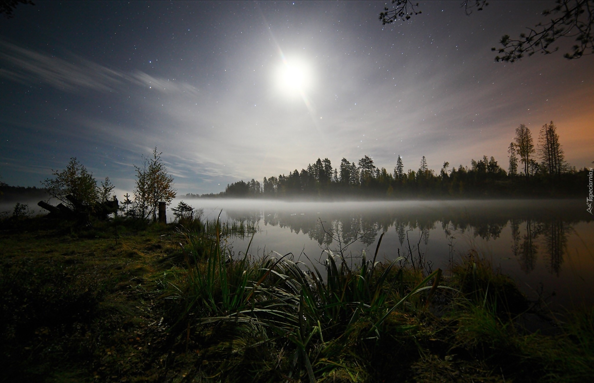 Edytor tapety: Rzeka, Drzewa, Mgła, Roślinność, Odbicie