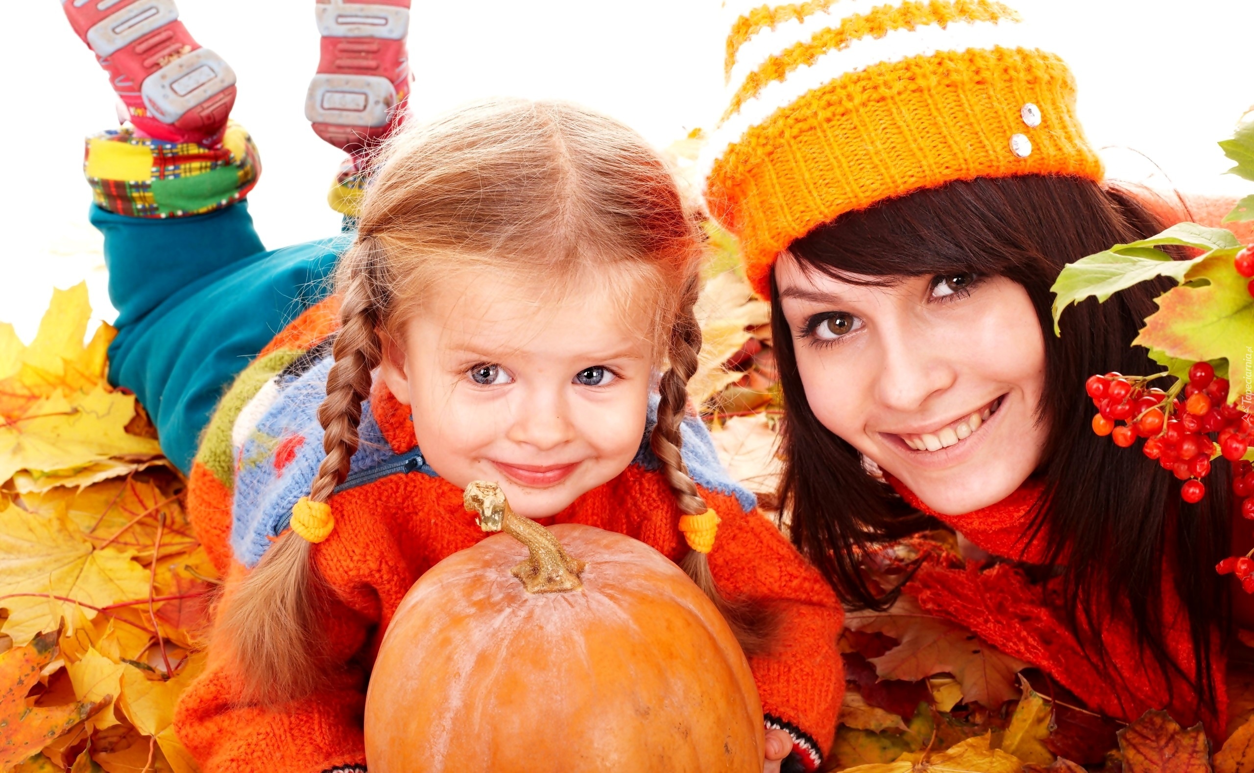 Edytor tapety: Kobieta, Dziewczynka, Jesienne, Liście, Dynia