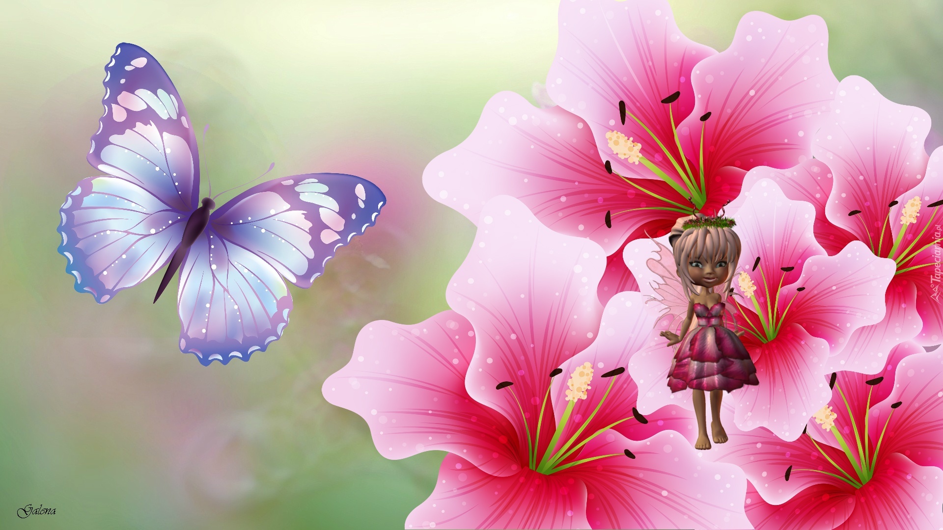 Edytor tapety: Kwiaty, Motyl, Laleczka, Grafika