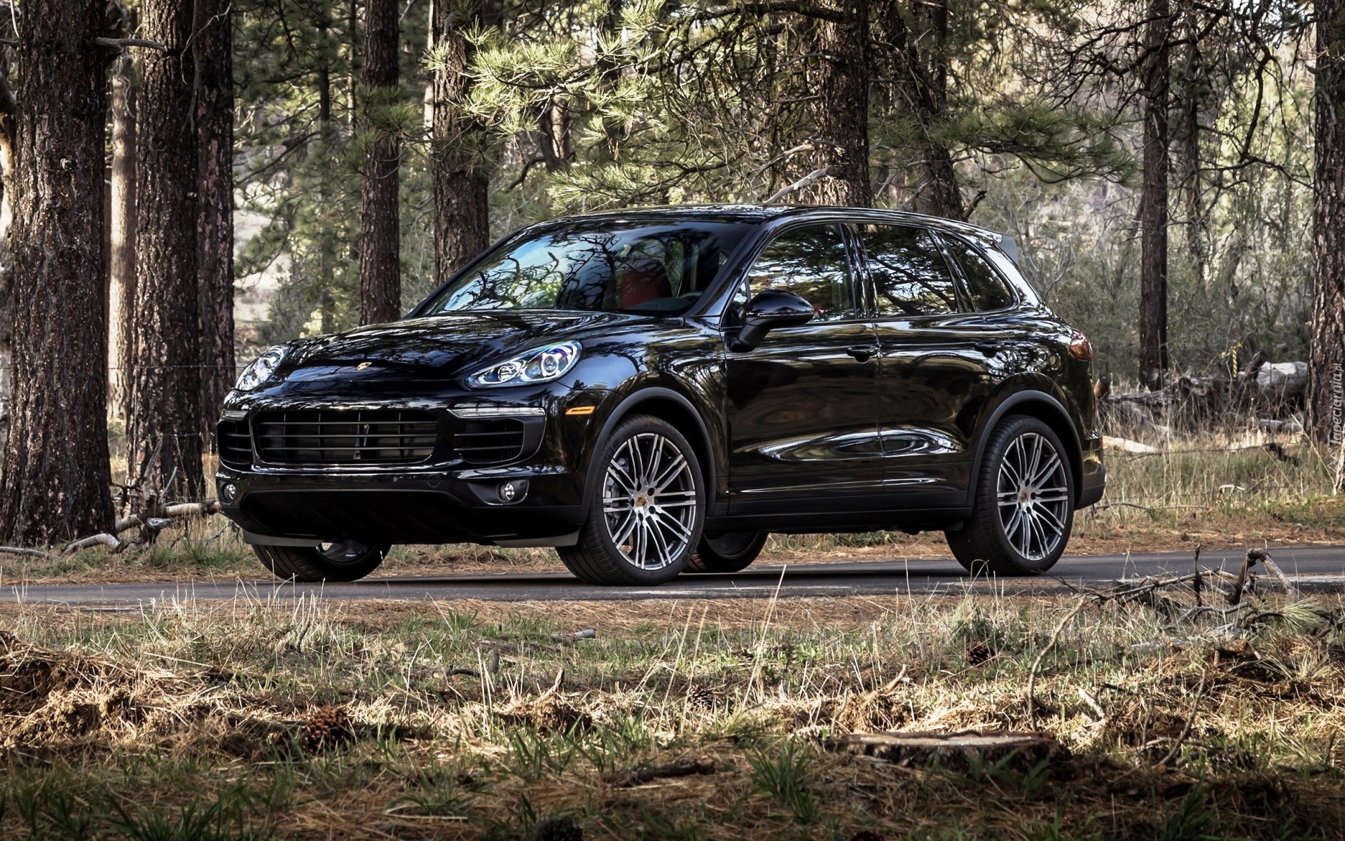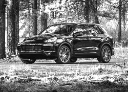 Edytor tapety: Las, Drzewa, Droga, Samochód, Porsche, Cayenne