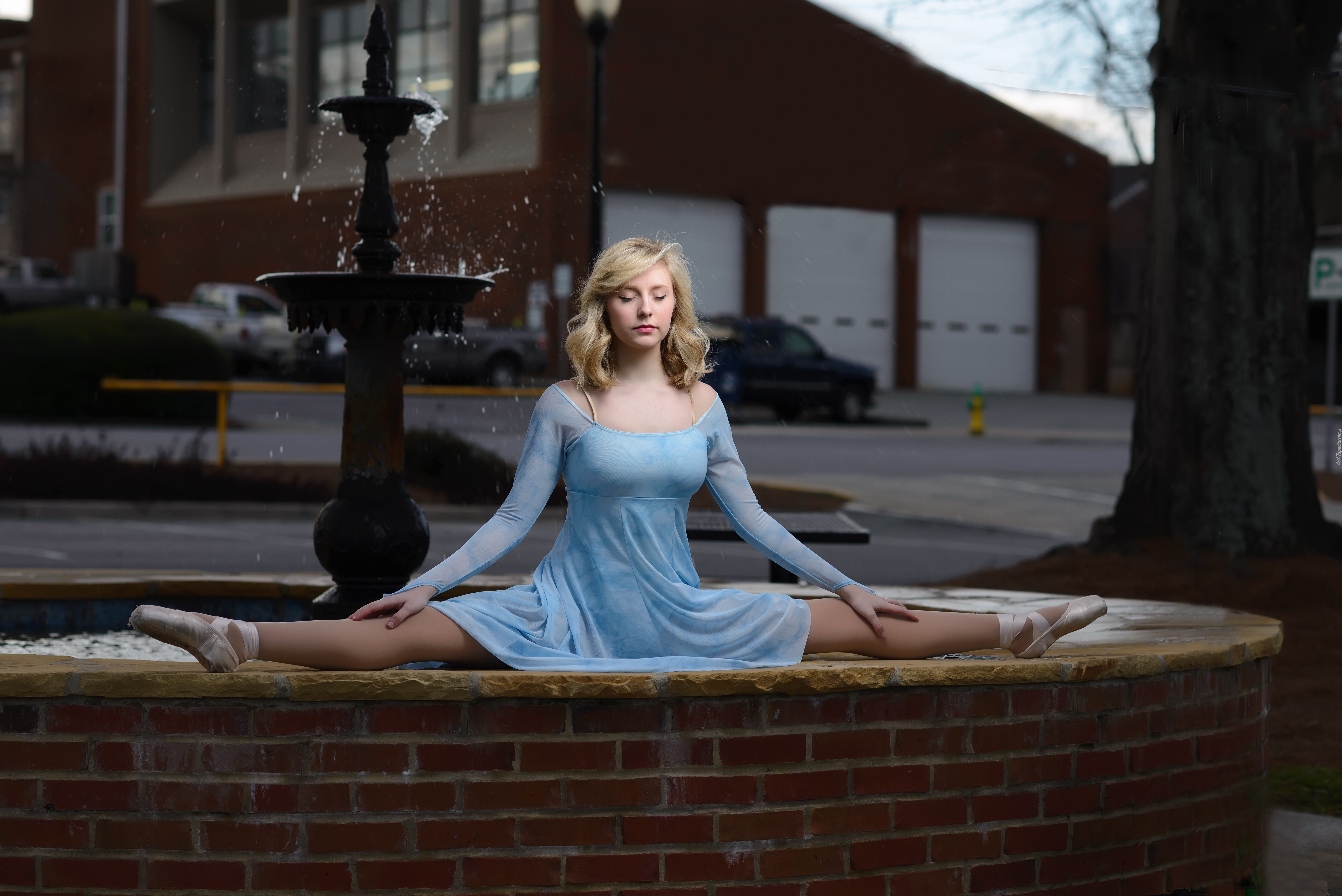 Edytor tapety: Blondwłosa, Dziewczyna, Baletnica, Fontanna, Miasto