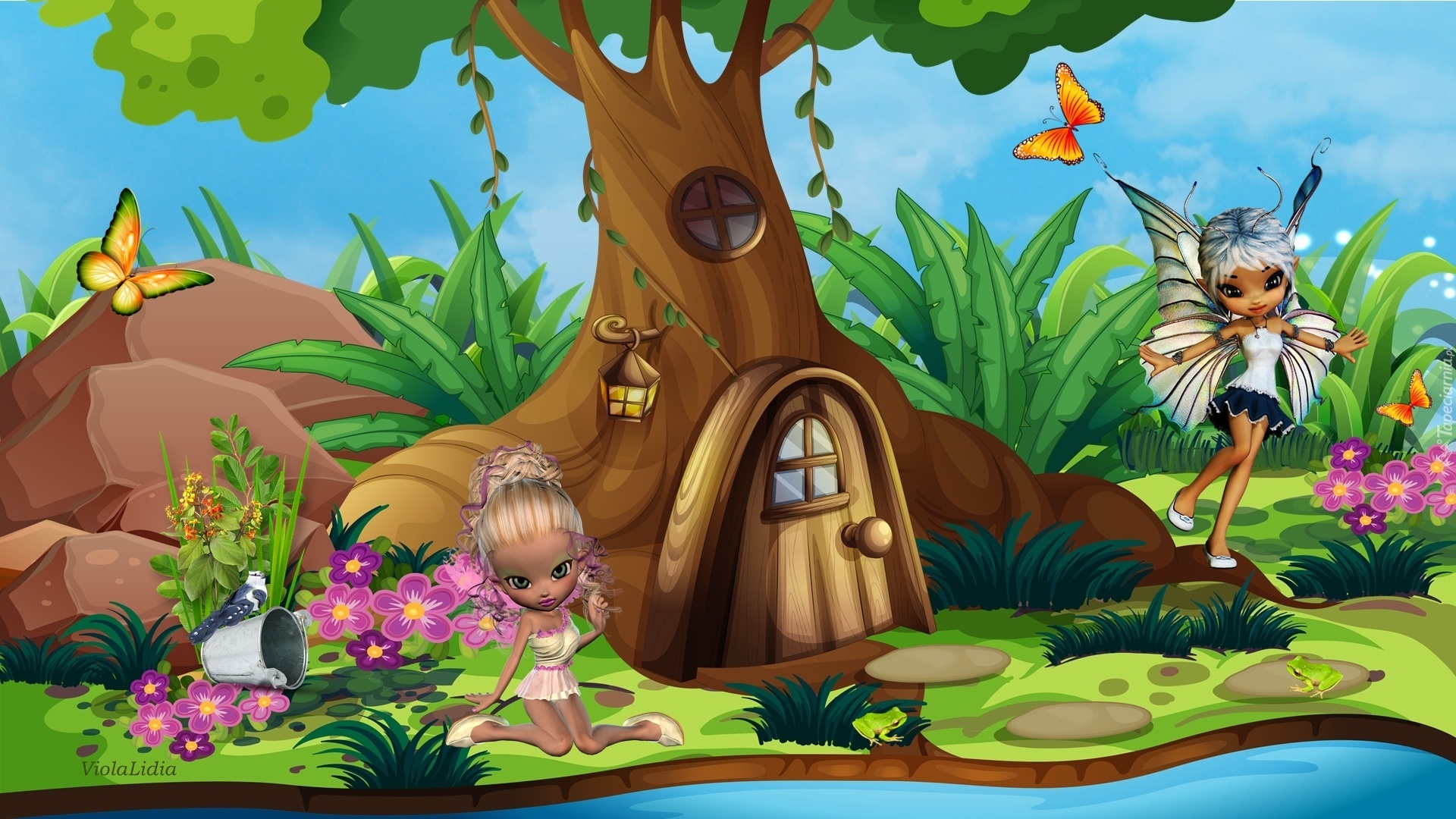 Edytor tapety: Grafika, Drzewo, Domek, Laleczki