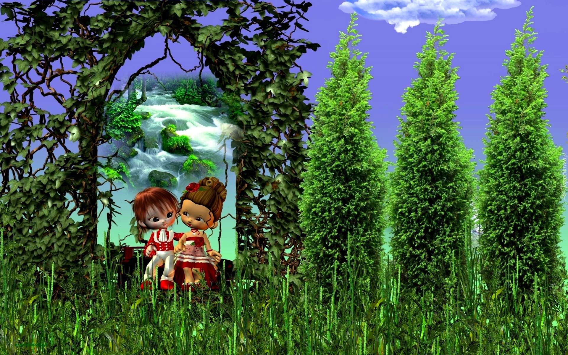 Edytor tapety: Grafika, Drzewa, Trawa, Laleczki