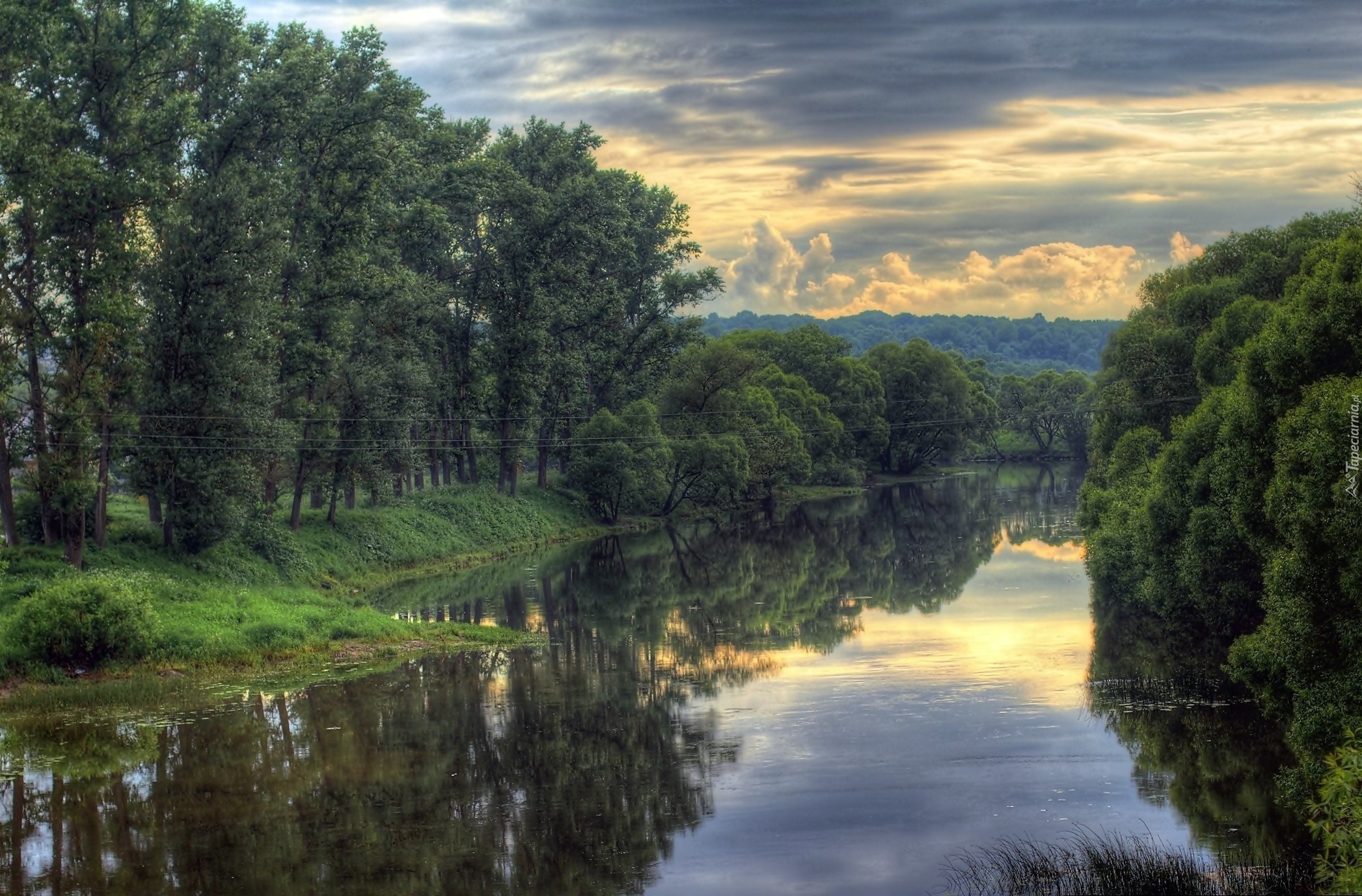 Edytor tapety: Las, Rzeka, Chmury