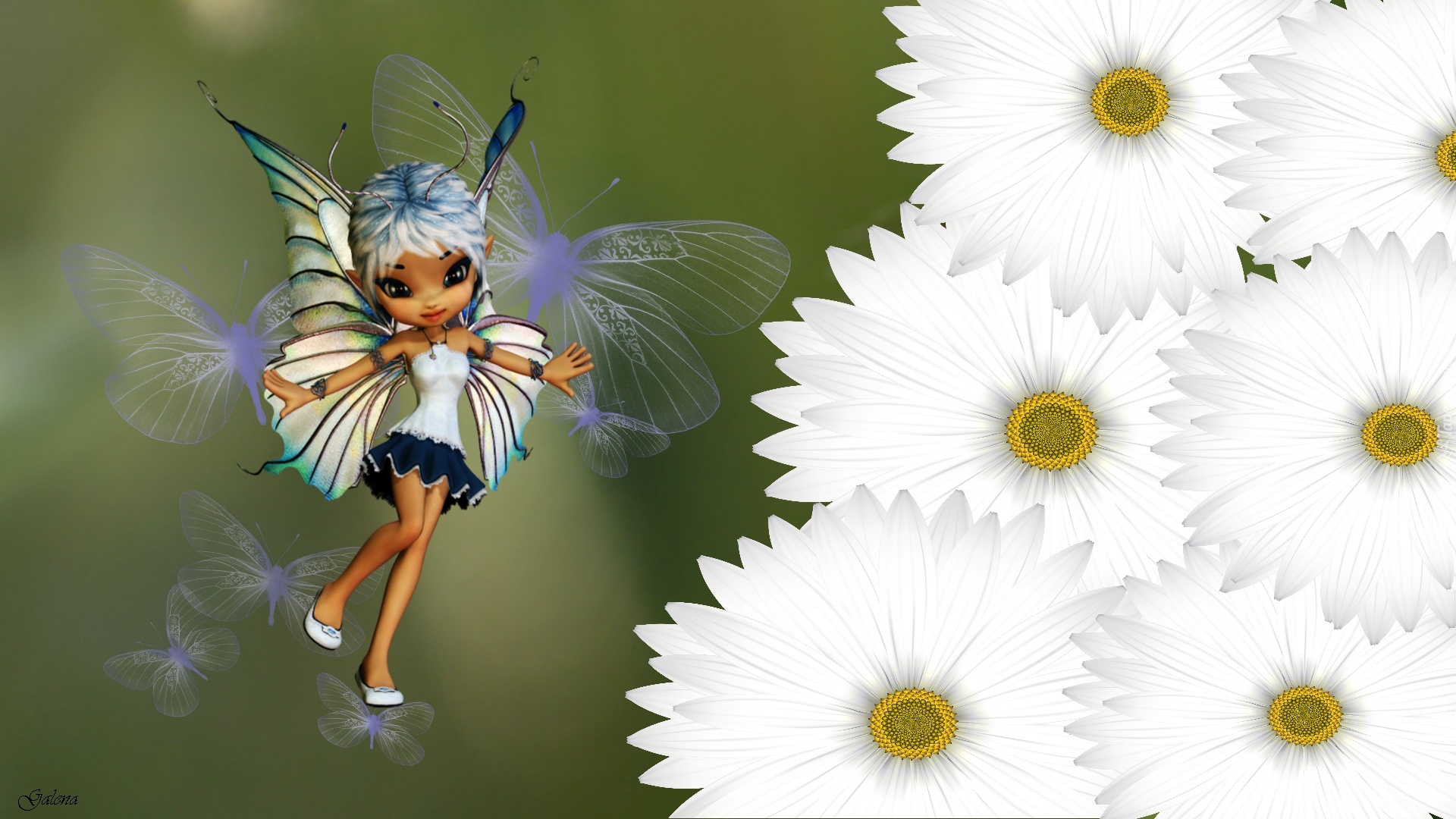 Edytor tapety: Białe, Kwiaty, Laleczka, Wróżka, Grafika