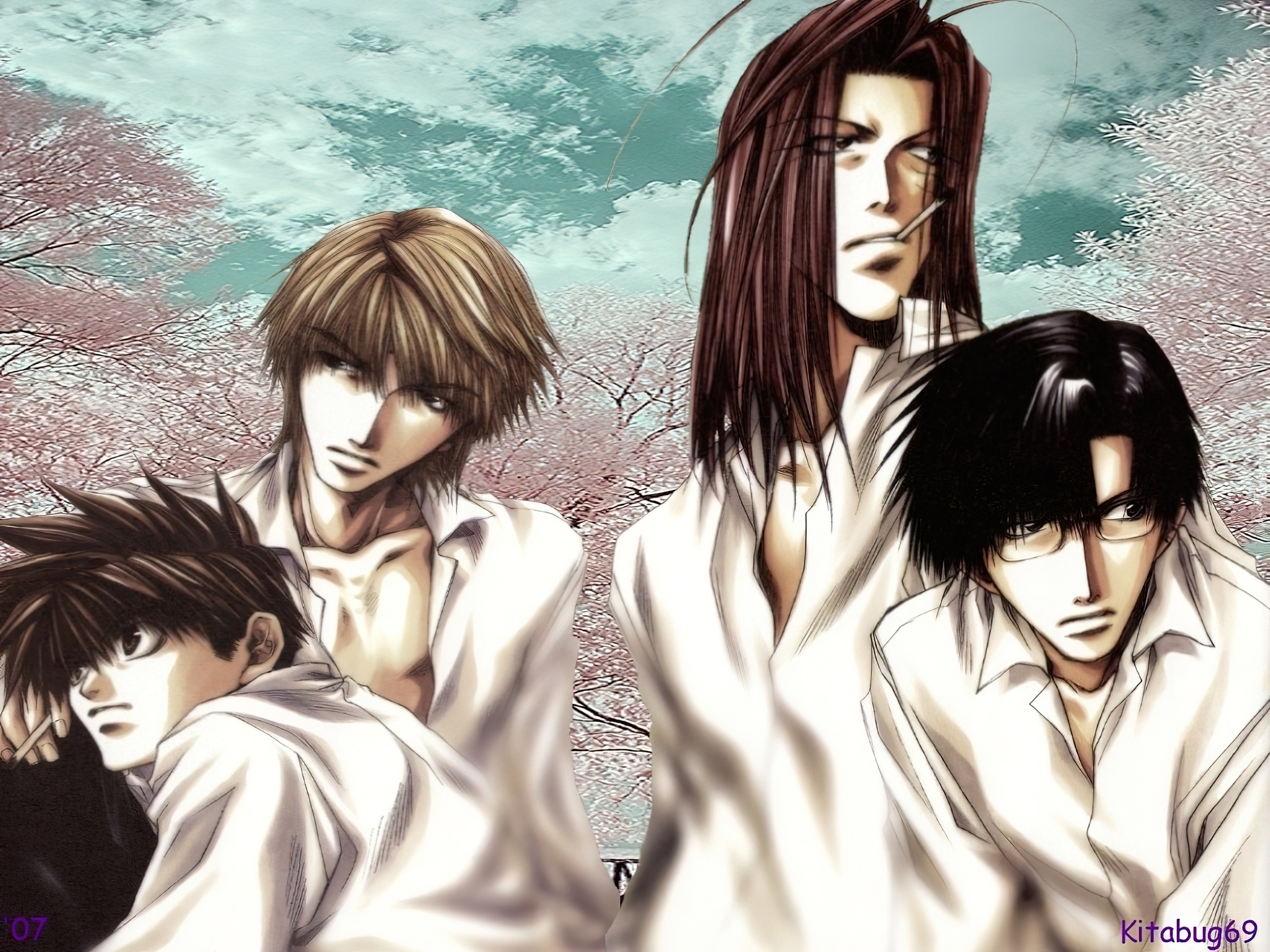 Edytor tapety: Saiyuki, postacie, drzewo, ludzie