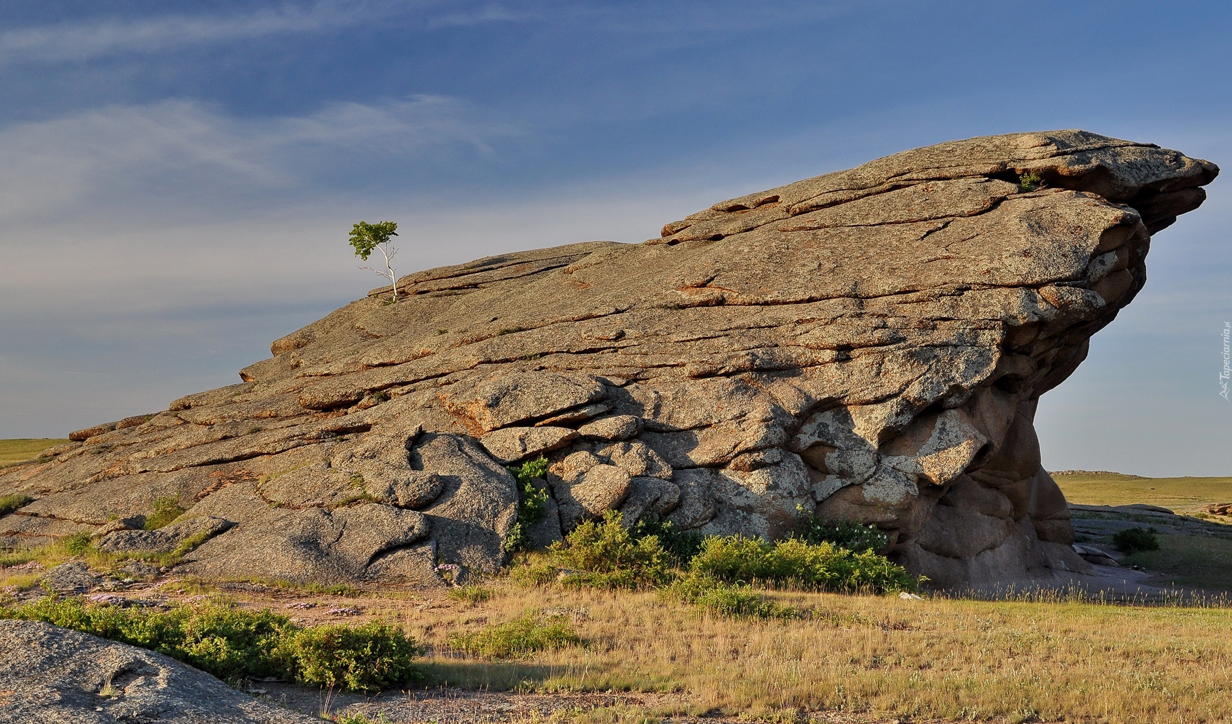 Edytor tapety: Skała, Drzewo, Trawa, Niebo