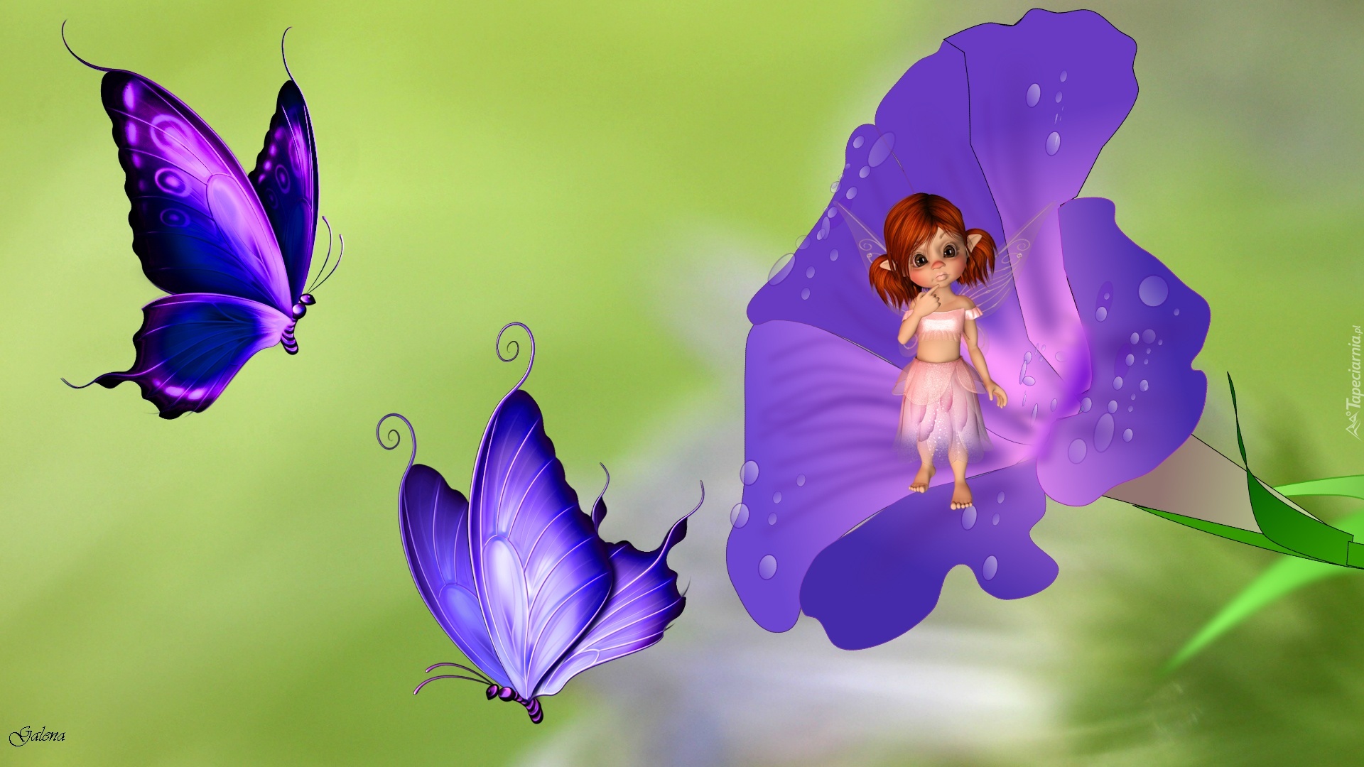 Edytor tapety: Fioletowy, Kwiat, Motyle, Laleczka, Grafika