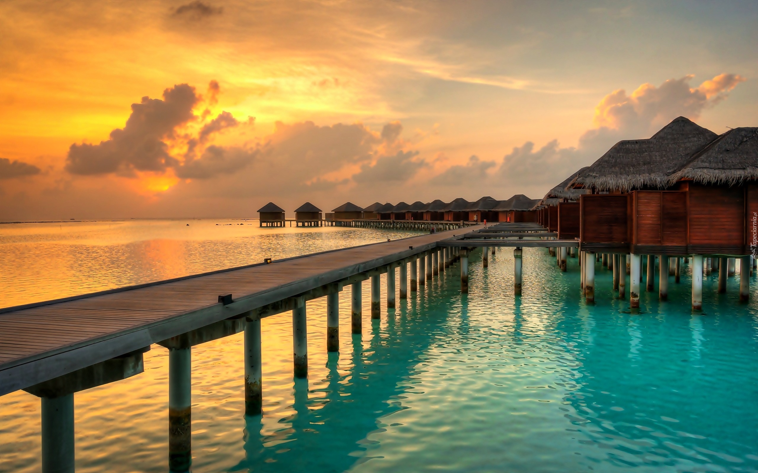 Edytor tapety: Morze, Molo, Zachód, Słońca, Domki, Kurort