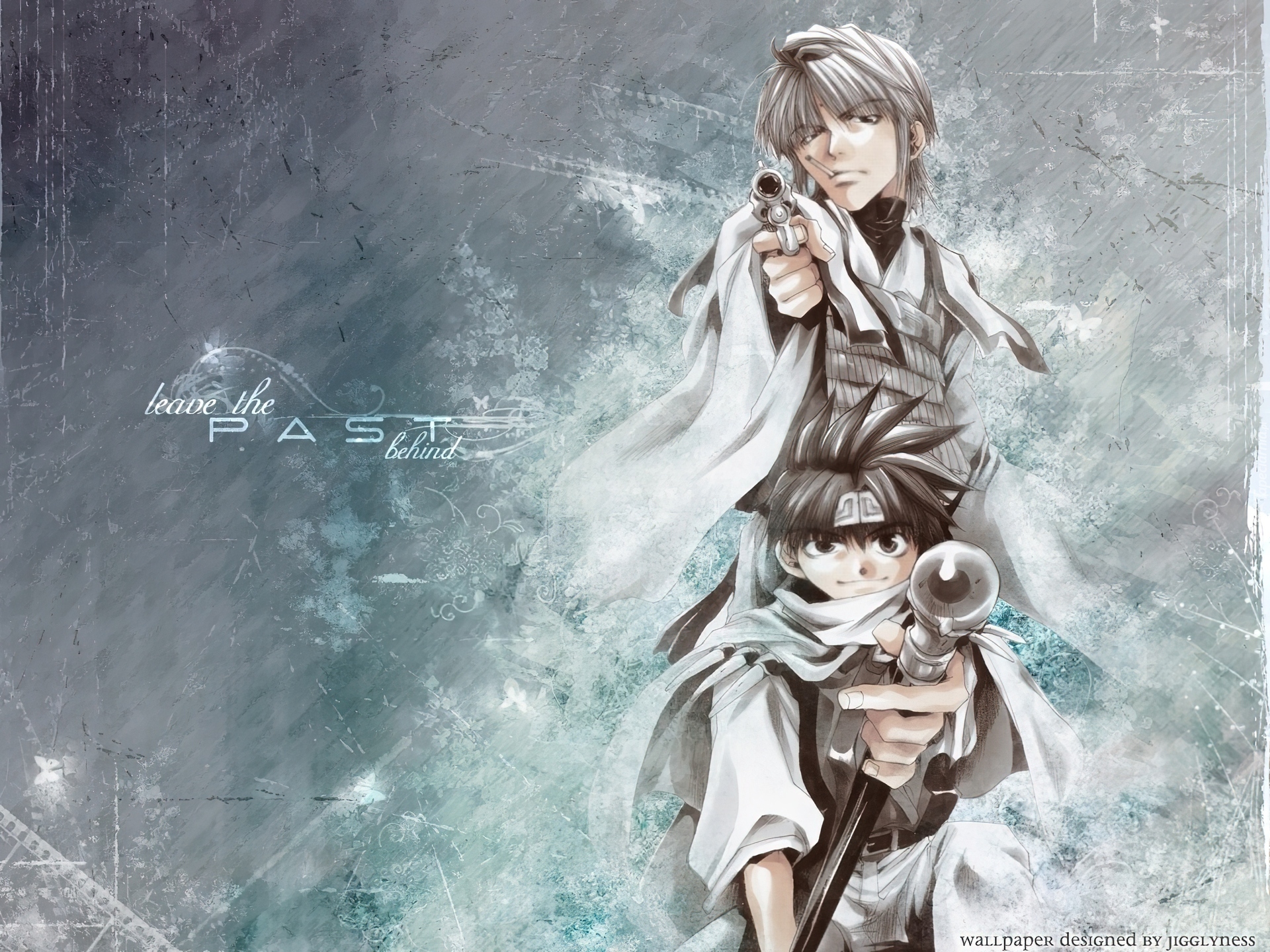 Edytor tapety: Saiyuki, pistolet, laska, ludzie