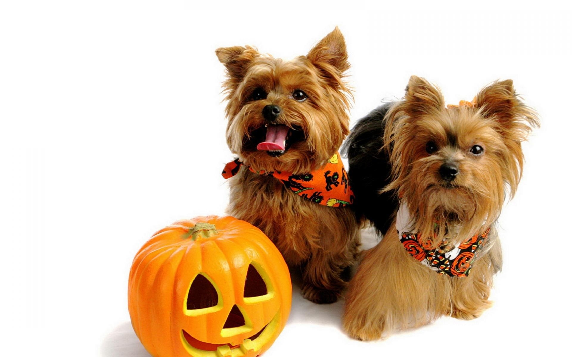 Edytor tapety: Dwa, Yorkshire Terriery, Dynia, Halloween