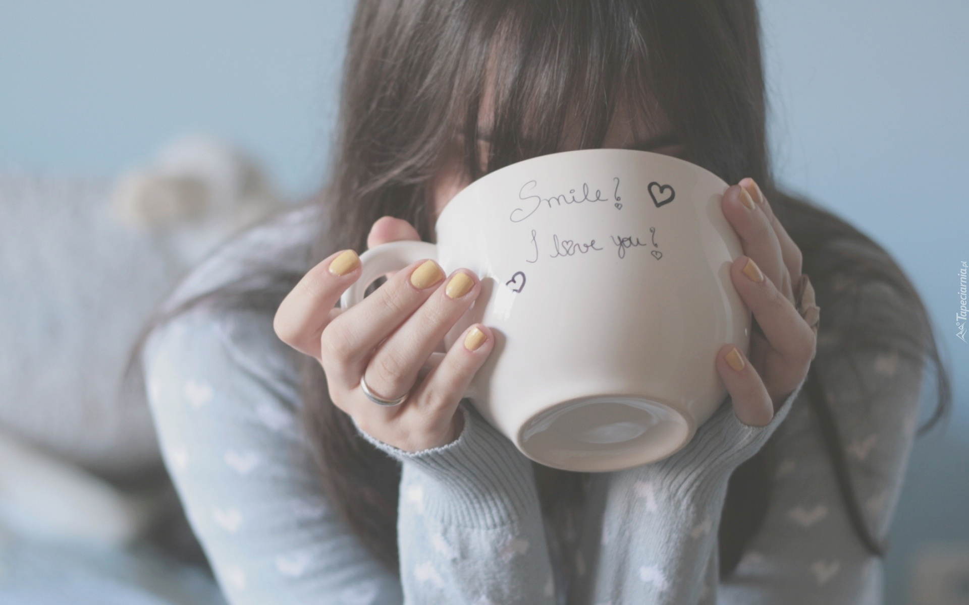Edytor tapety: Kobieta, Brunetka, Filiżanka
