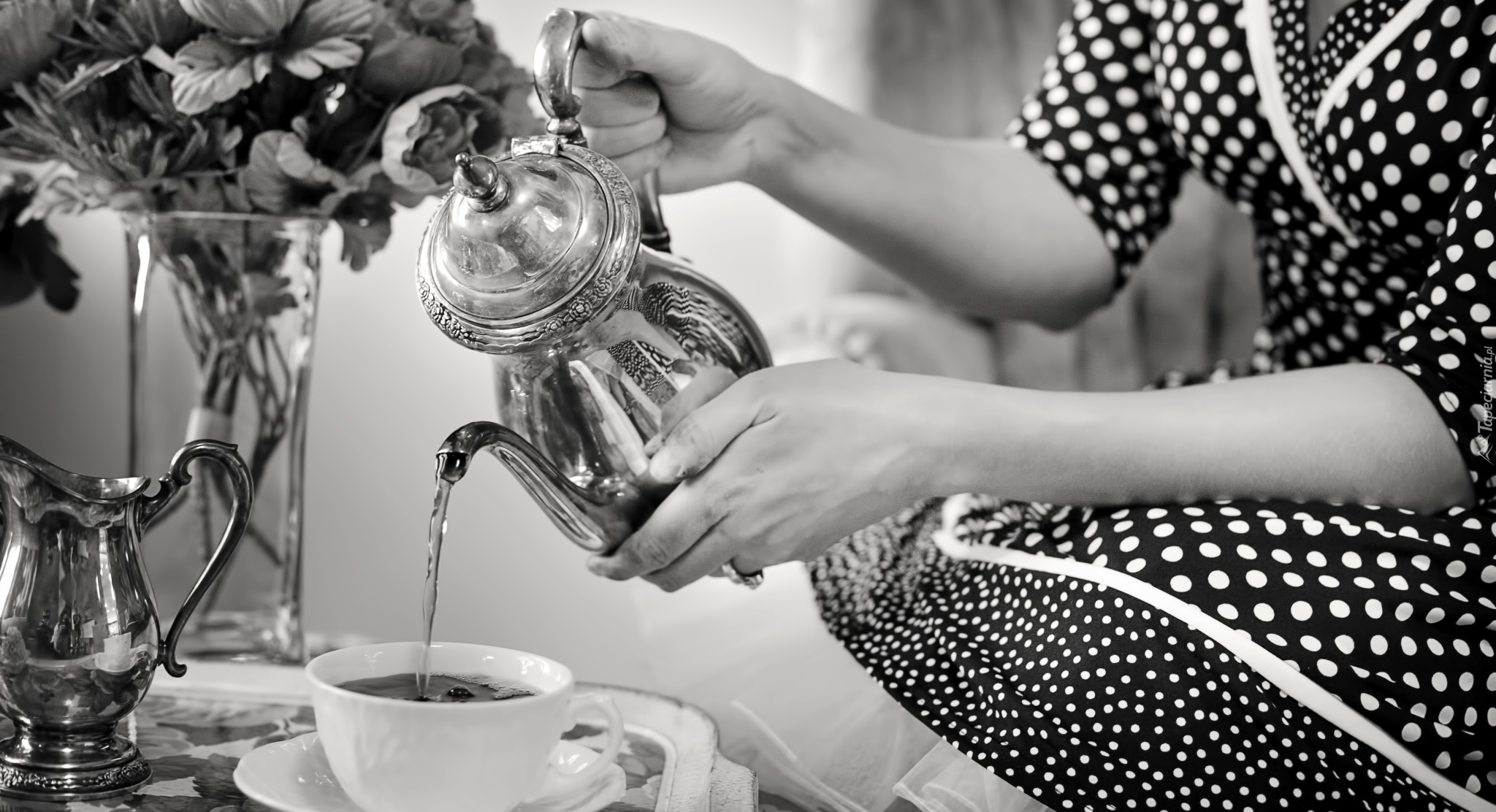 Edytor tapety: Czajnik, Filiżanka, Herbata, Czarno-Białe