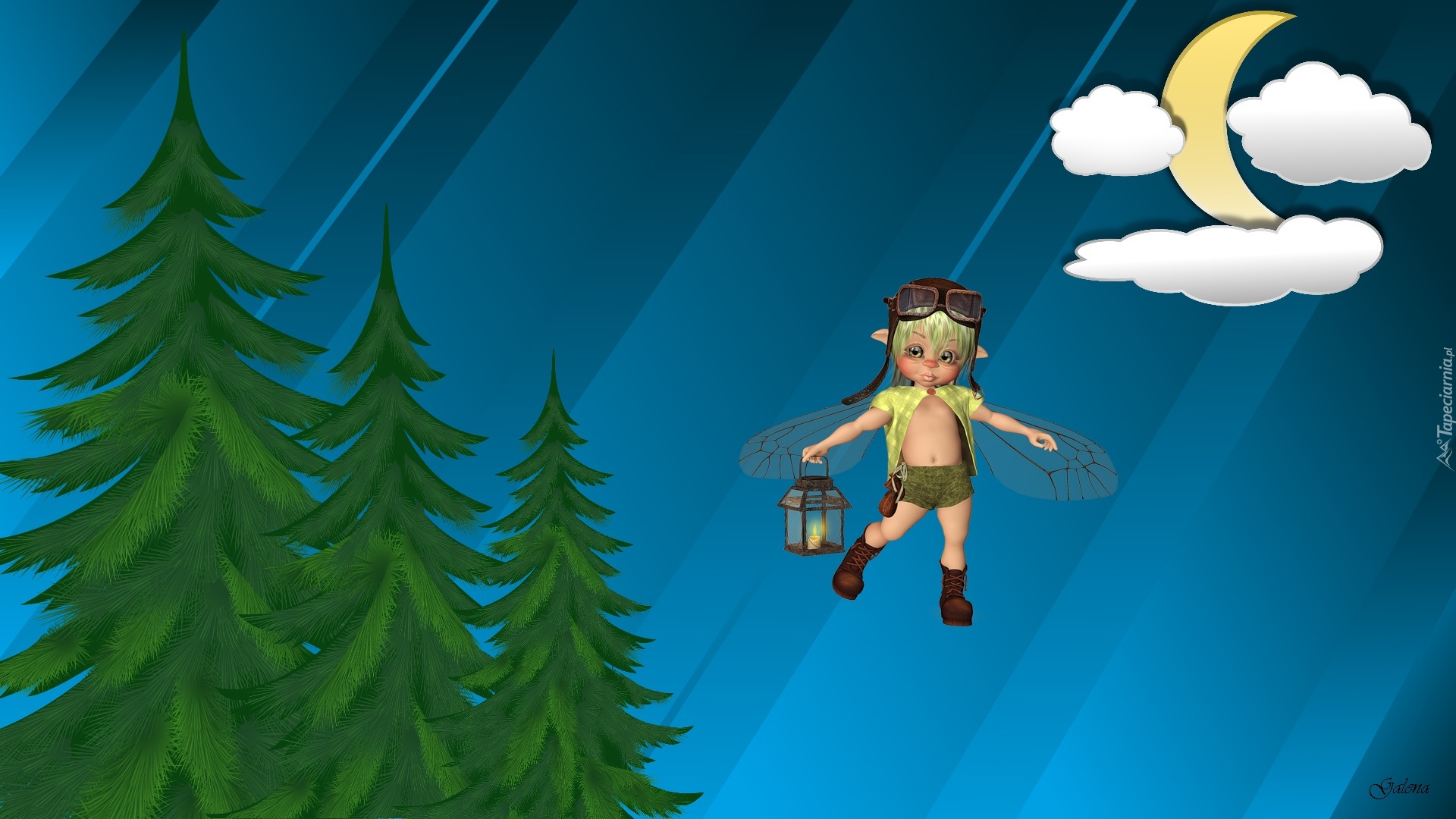 Edytor tapety: Laleczka, Drzewa, Księżyc, Noc