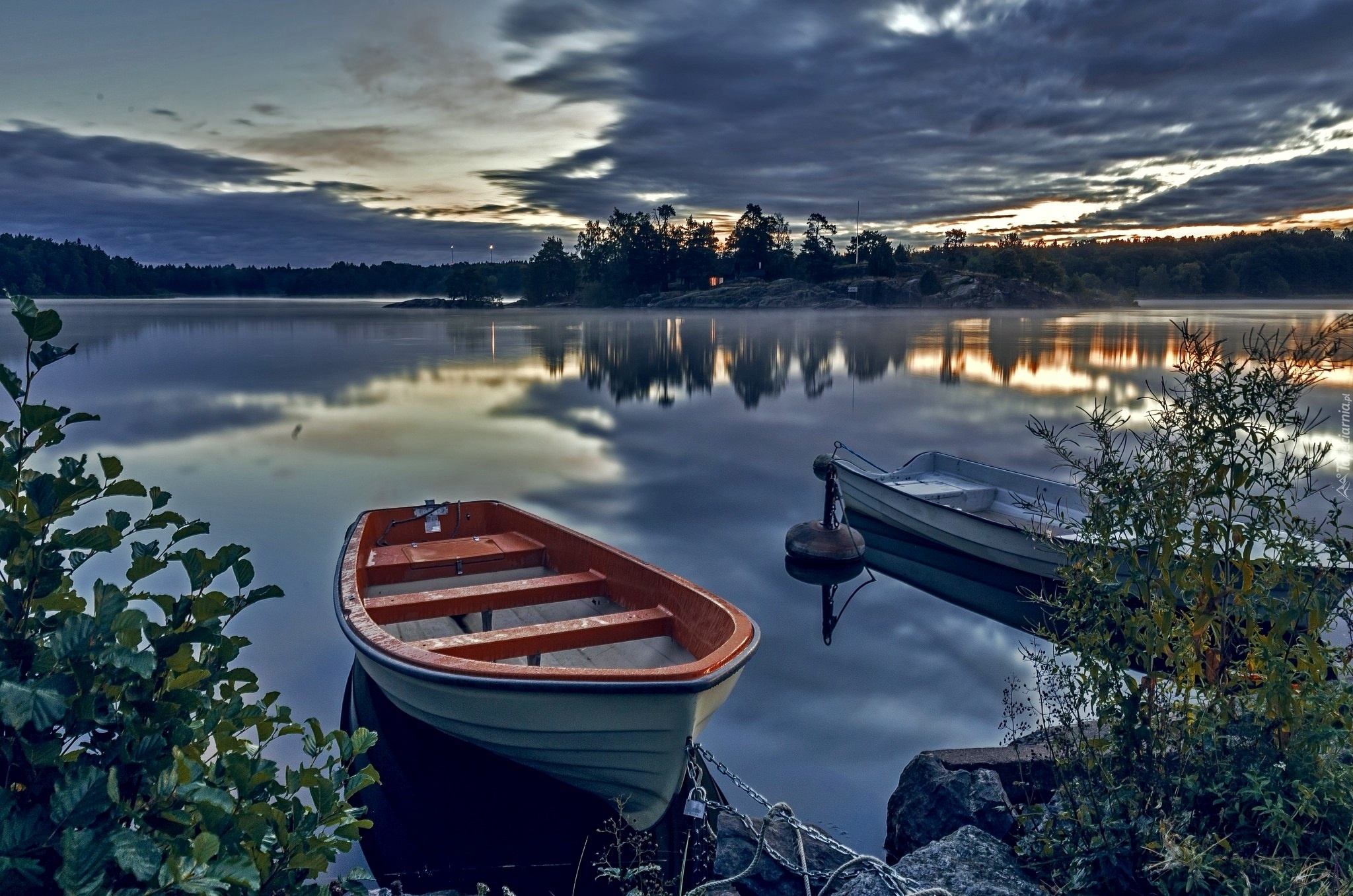 Edytor tapety: Jezioro, Łódki, Roślinność