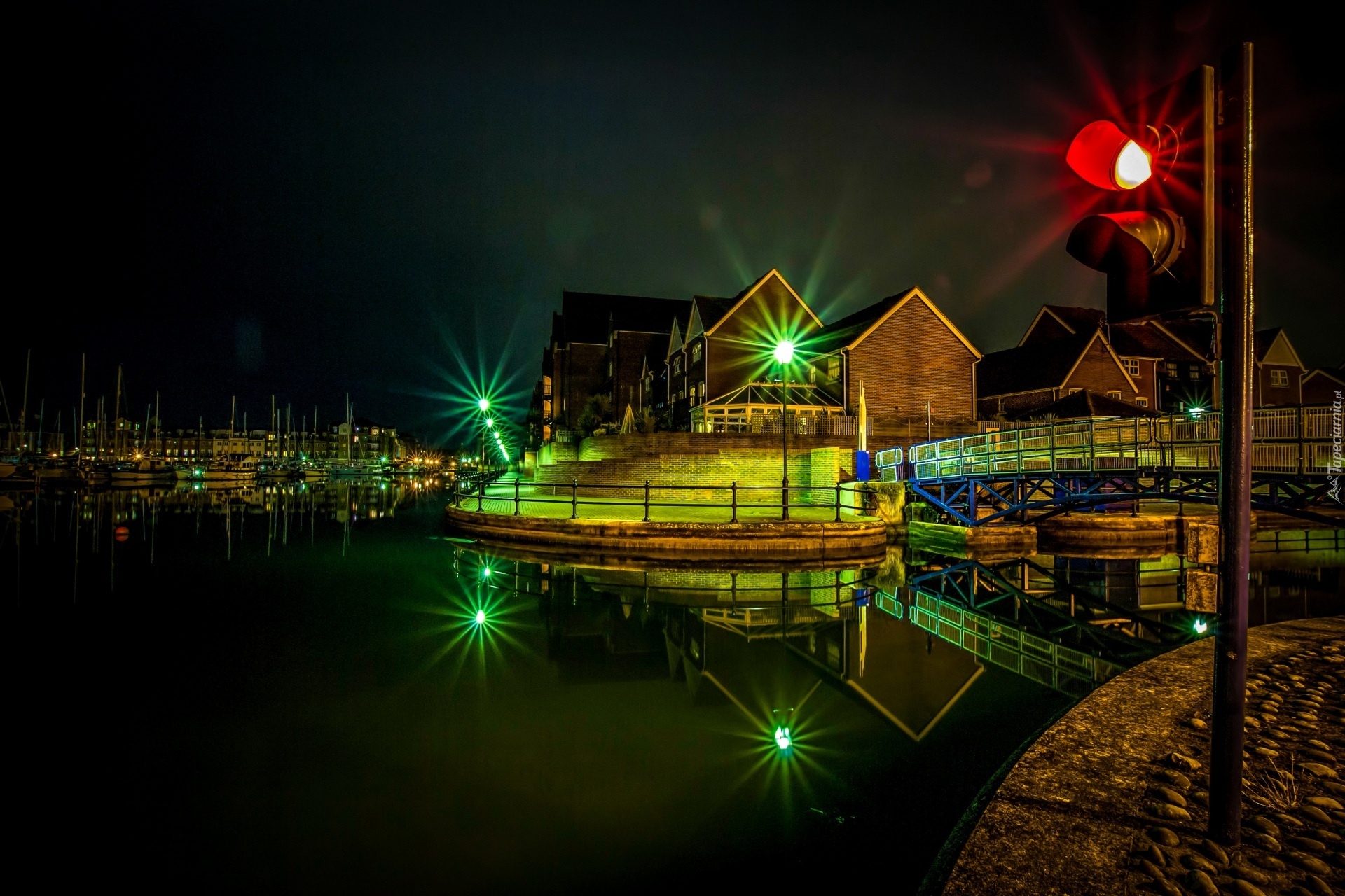 Edytor tapety: Port, Budynki, Lampa, Blask, Mostki, Woda