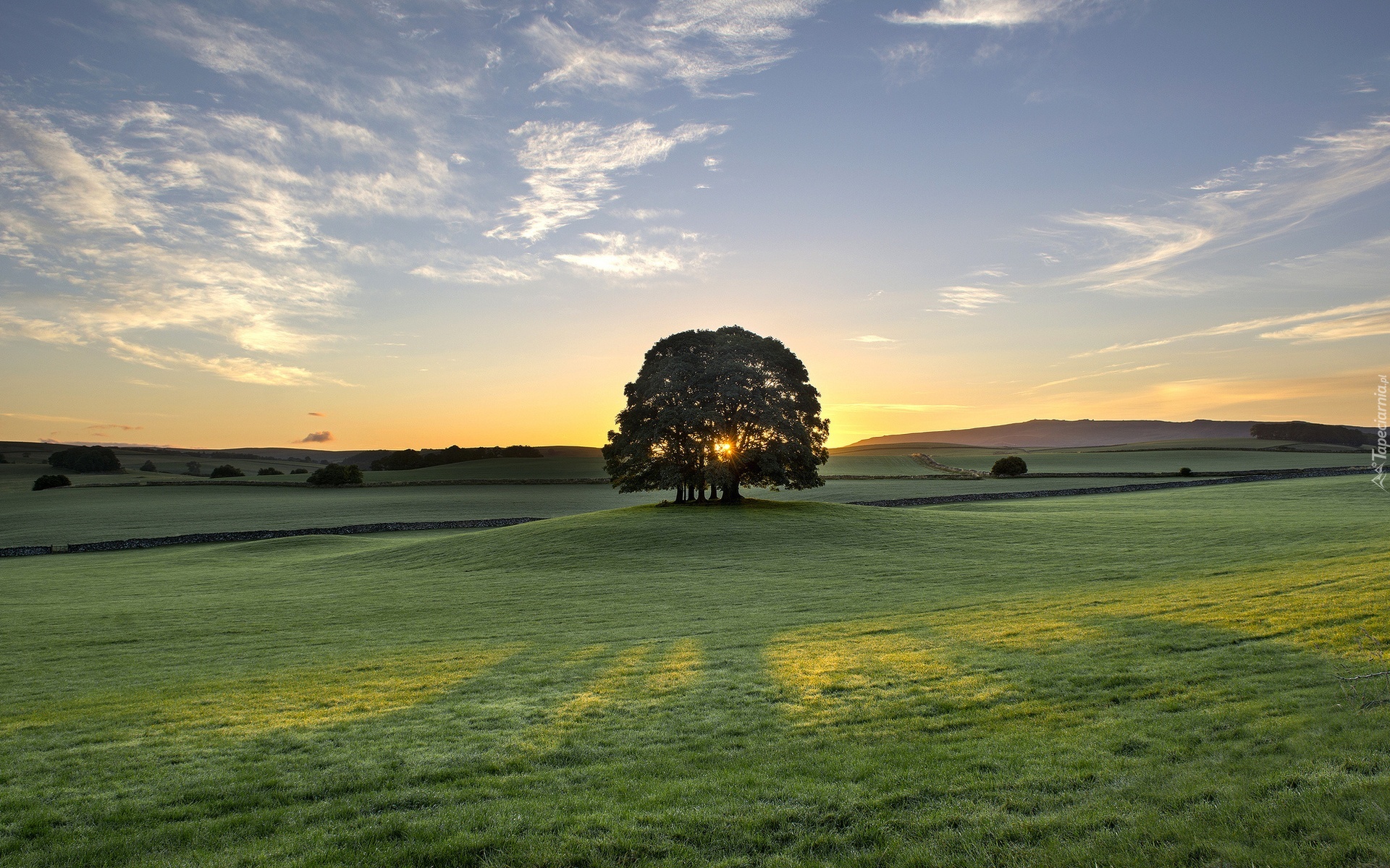 Edytor tapety: Łąka, Trawa, drzewo, Niebo