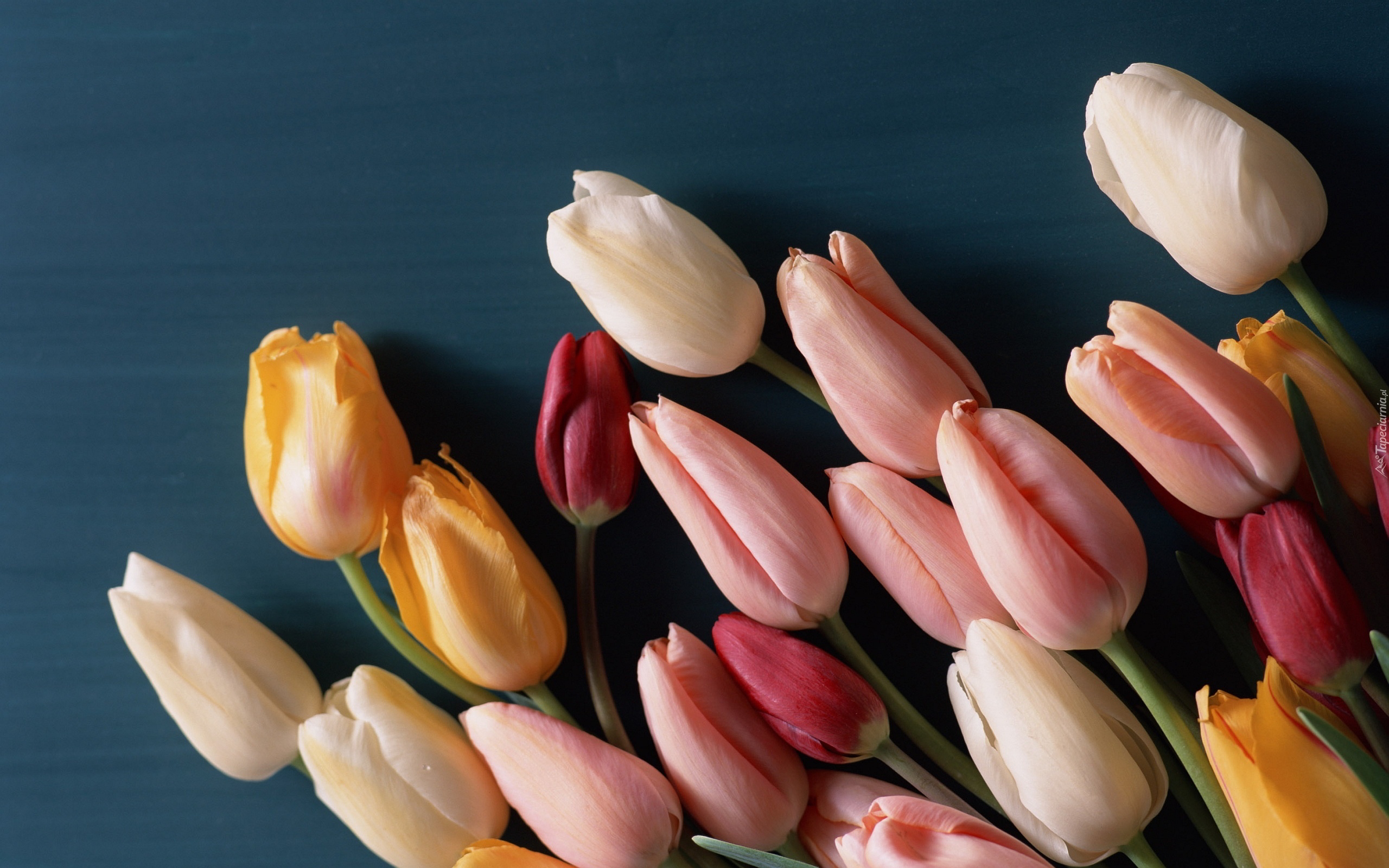 Edytor tapety: Tulipany, Kolorowe, Niebieskie, Tło