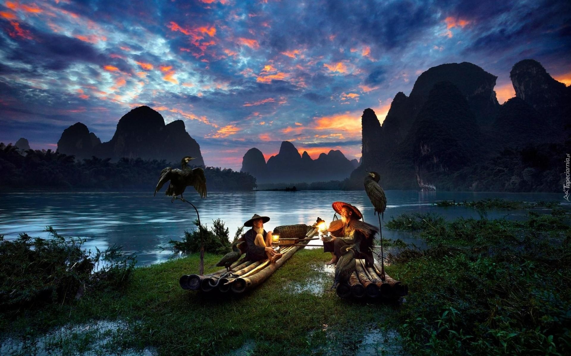 Edytor tapety: Chiny, Starcy, Łodzie, Rzeka, Góry