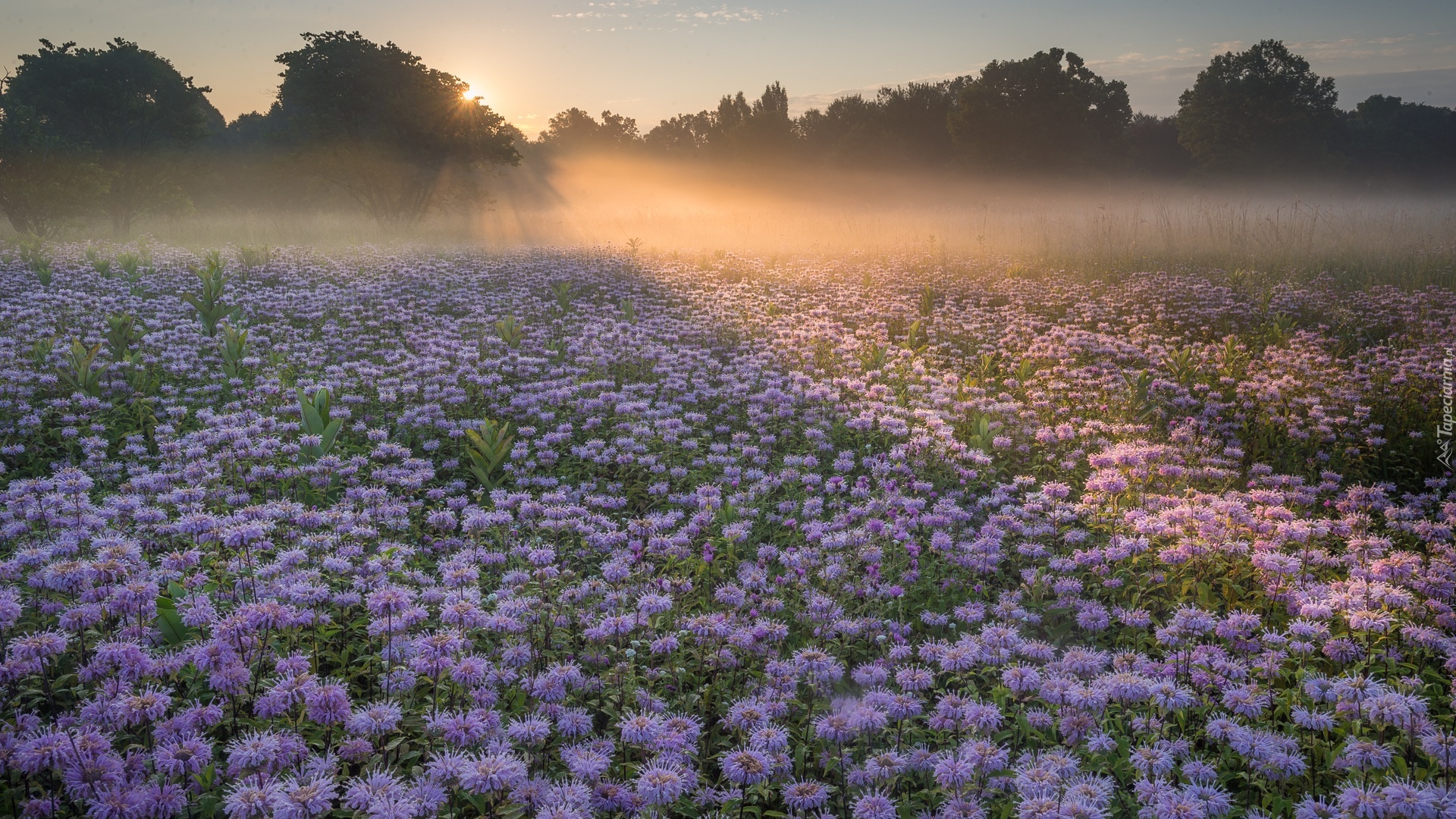 Edytor tapety: Kwiecista, Łąka, Mgła, Wschód słońca