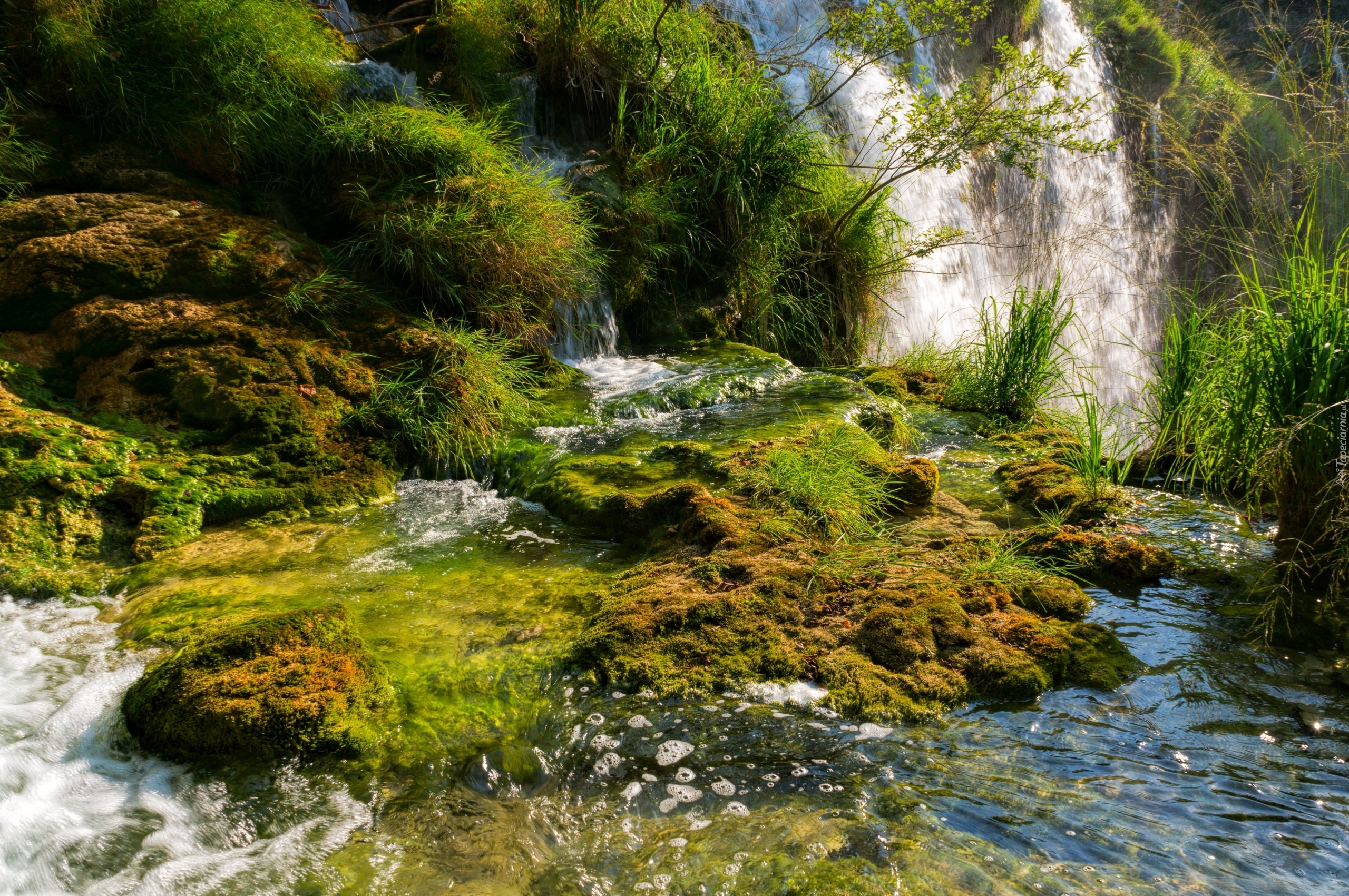 Edytor tapety: Wodospad, Kaskady, Krzewy, Mech