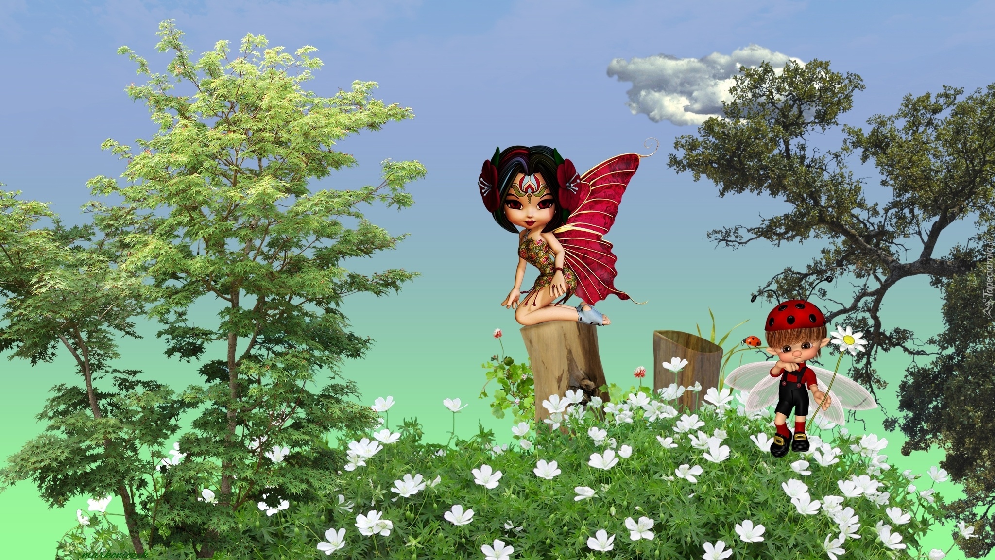 Edytor tapety: Grafika, Drzewa, Kwiaty, Motylek