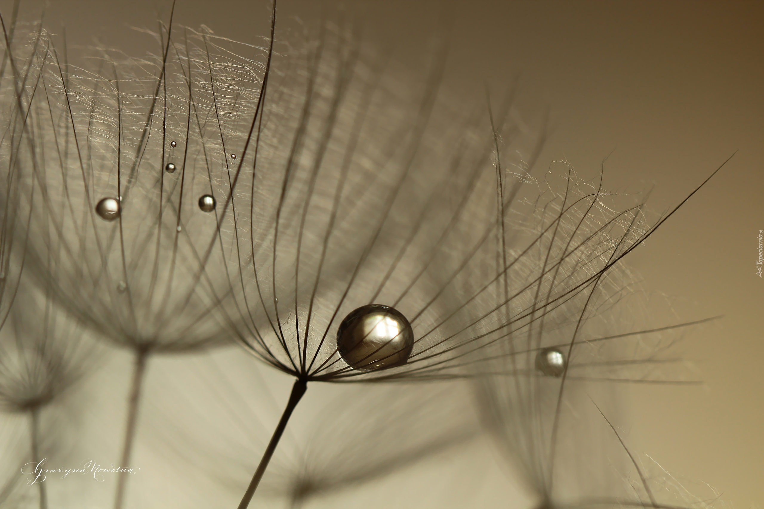 Edytor tapety: Kozibród Łąkowy, Krople, Dmuchawce, Makro