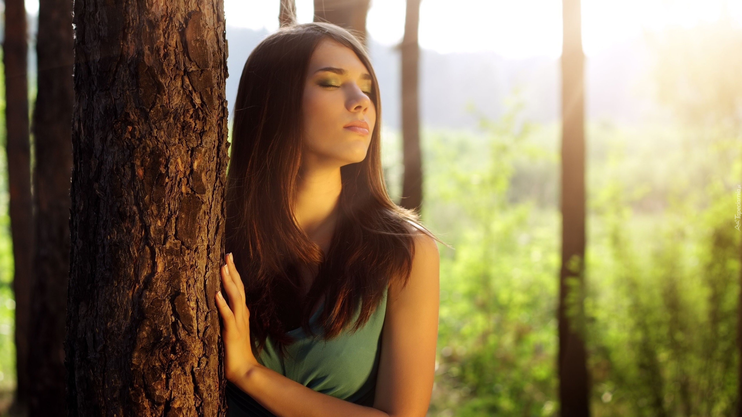 Edytor tapety: Wschód, Słońca, Las, Kobieta, Relaks