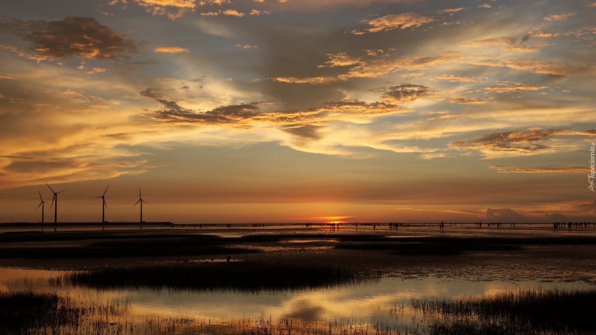 Edytor tapety: Zachód, Słońca, Morze, Generatory, Wiatrowe