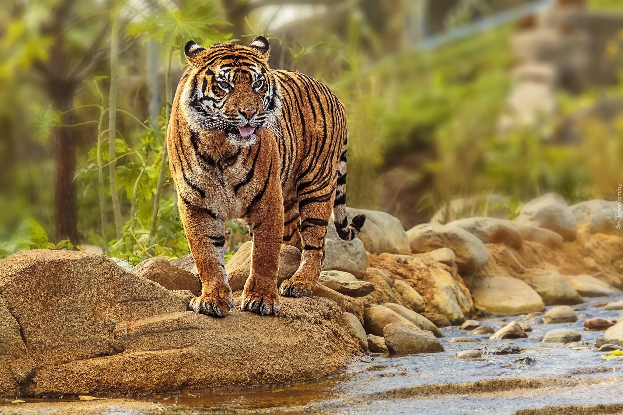 Edytor tapety: Tygrys, Kamienie, Woda
