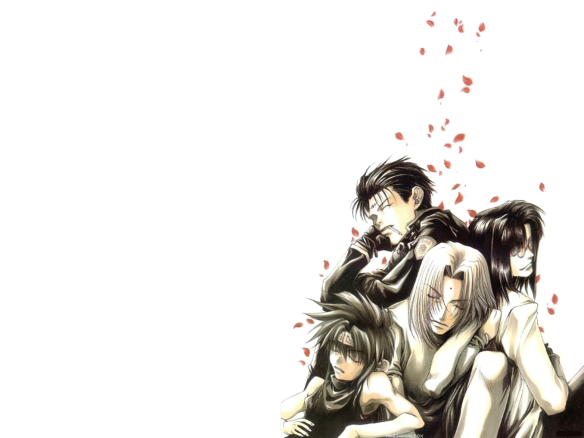 Edytor tapety: Saiyuki, grupa, ludzie, płatki