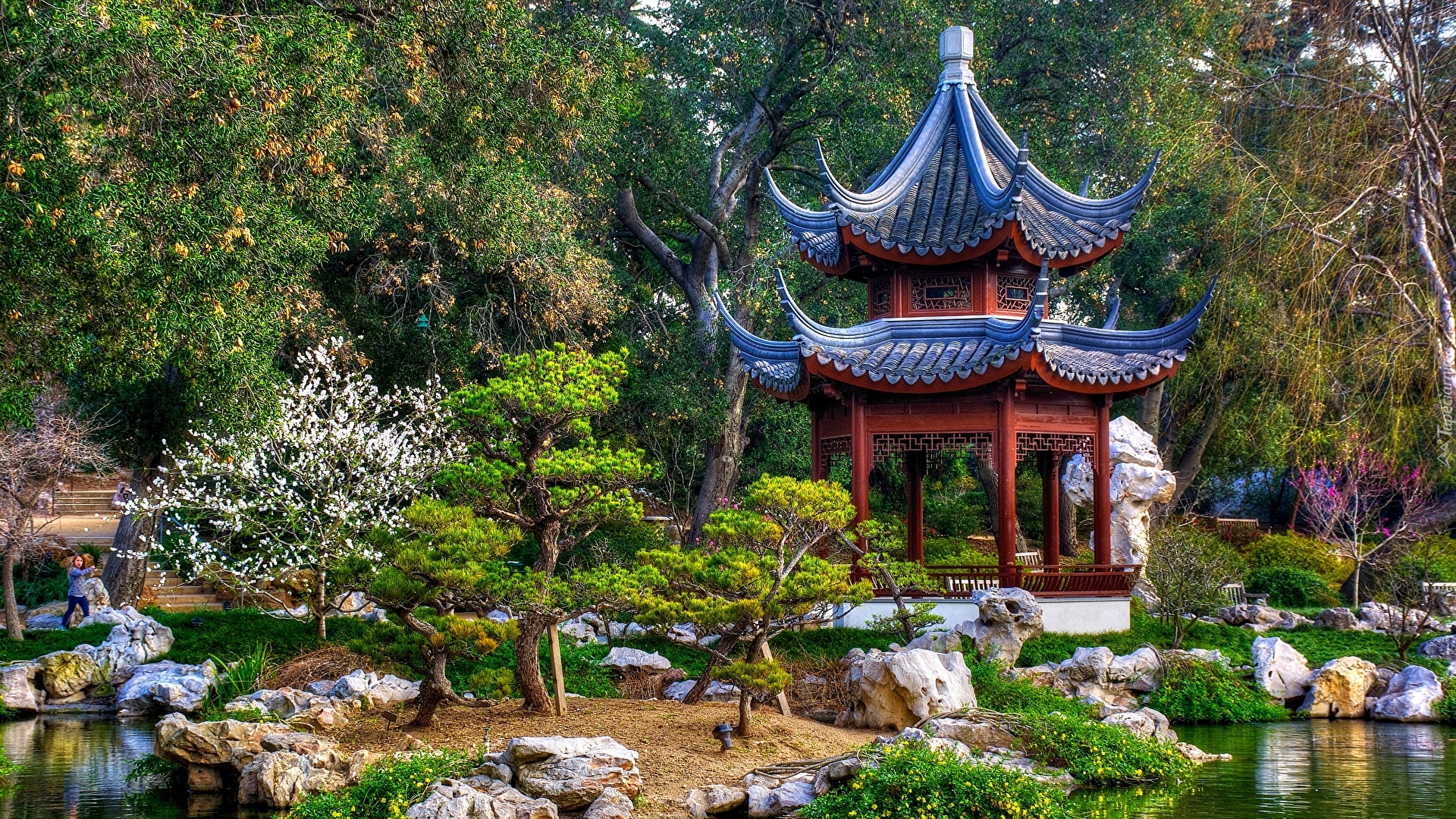 Edytor tapety: Altana, Drzewa, Kamienie, Kwiaty, Japoński, Ogród
