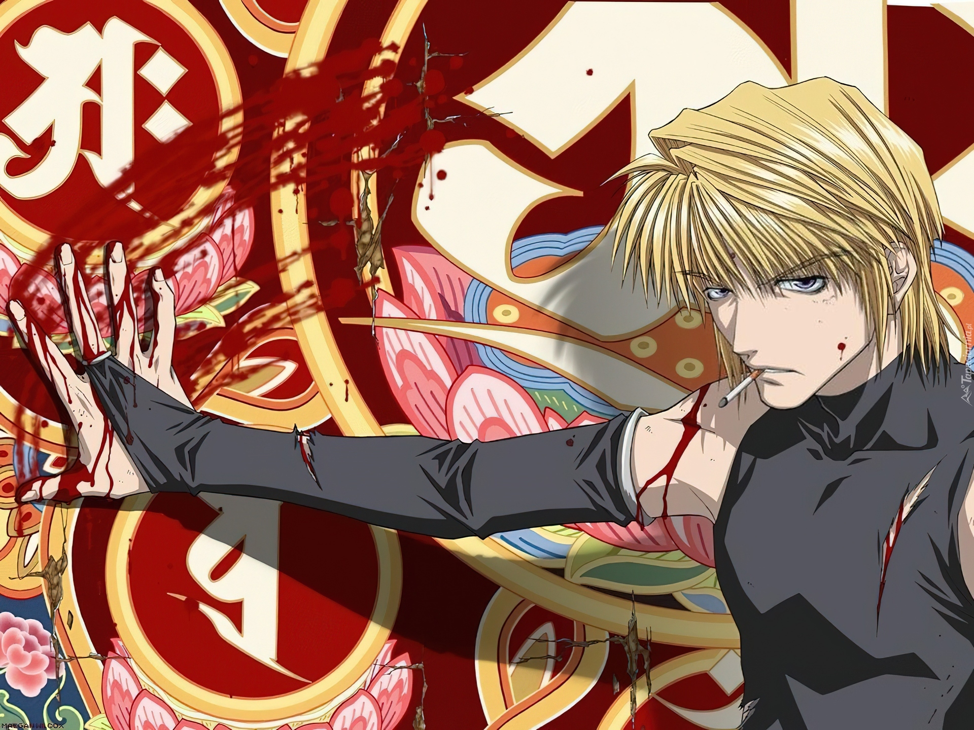 Edytor tapety: Saiyuki, facet, papieros, krew