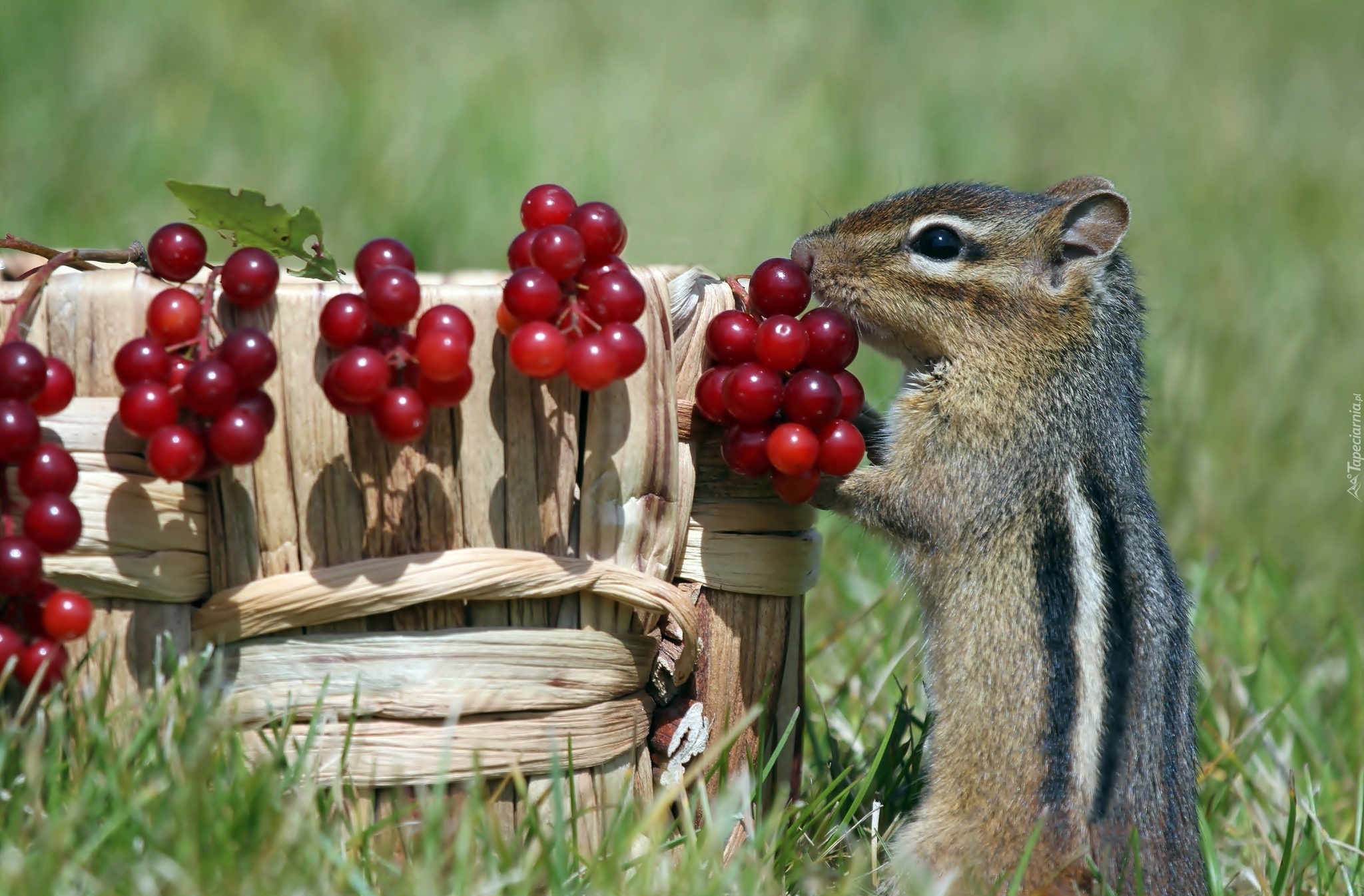 Edytor tapety: Chipmunk, Koszyk, Jagody, Trawa