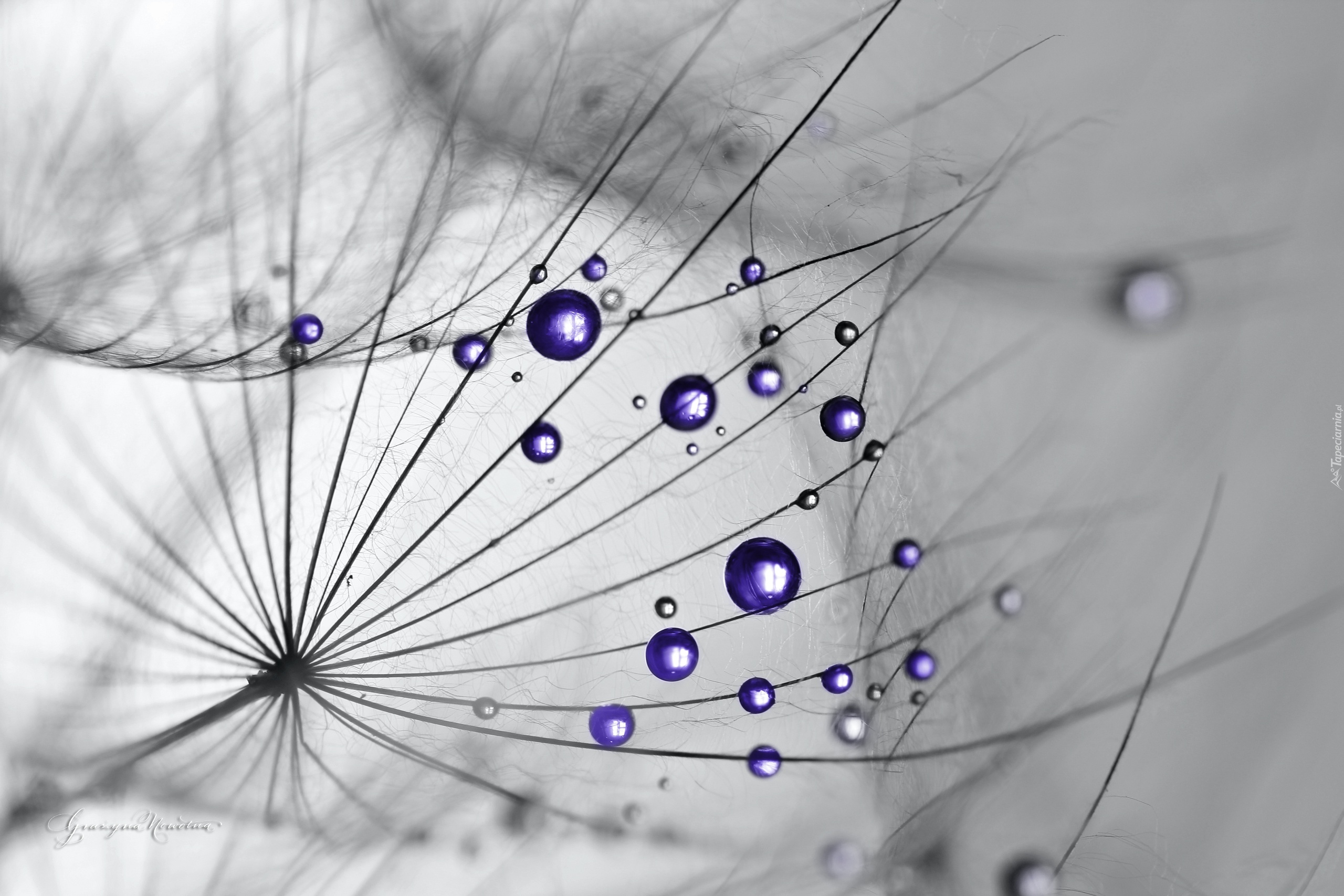 Edytor tapety: Kozibród Łąkowy, Niebieskie, Krople, Makro