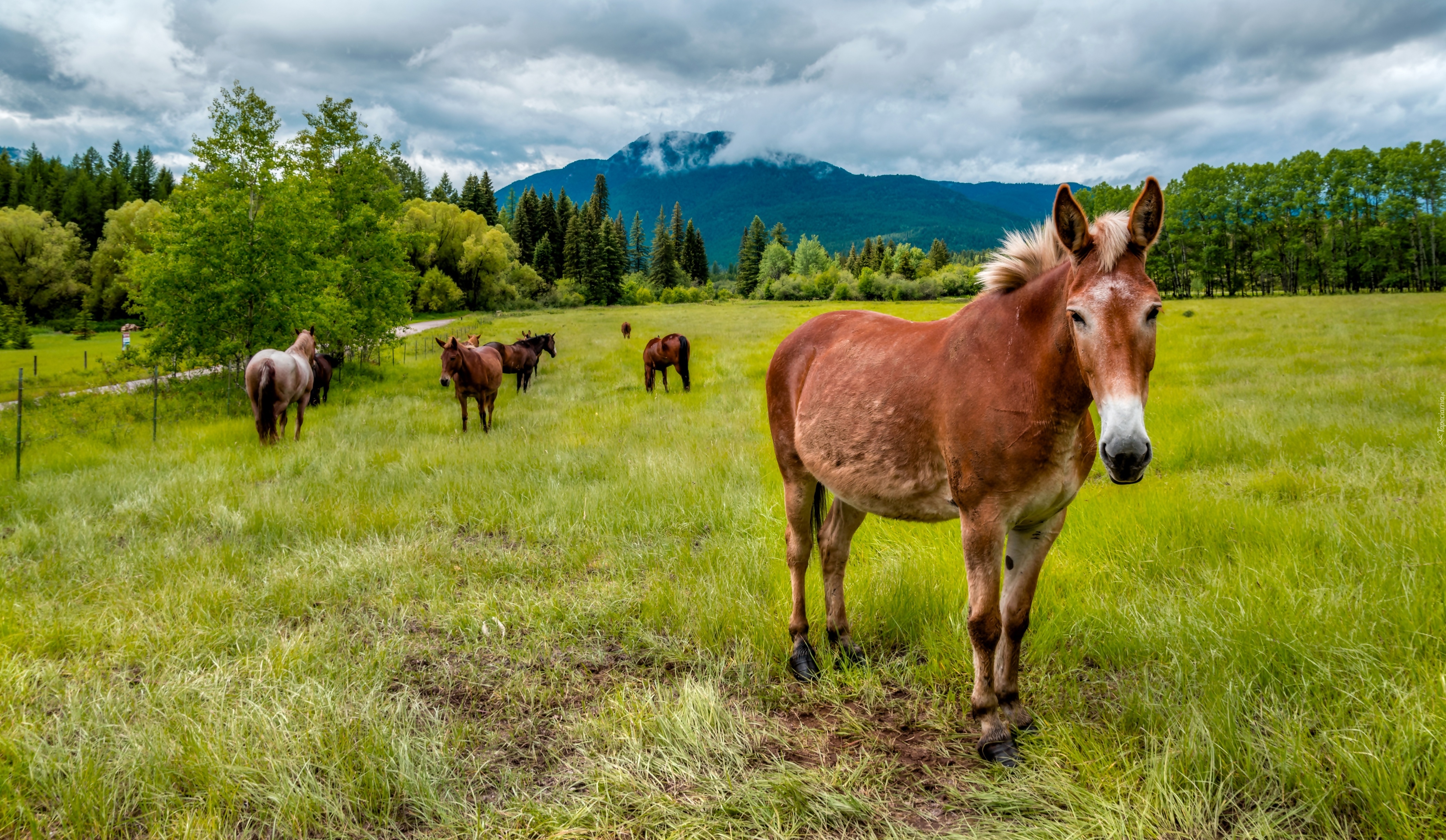 Edytor tapety: Konie, Łąka, Lasy, Góry